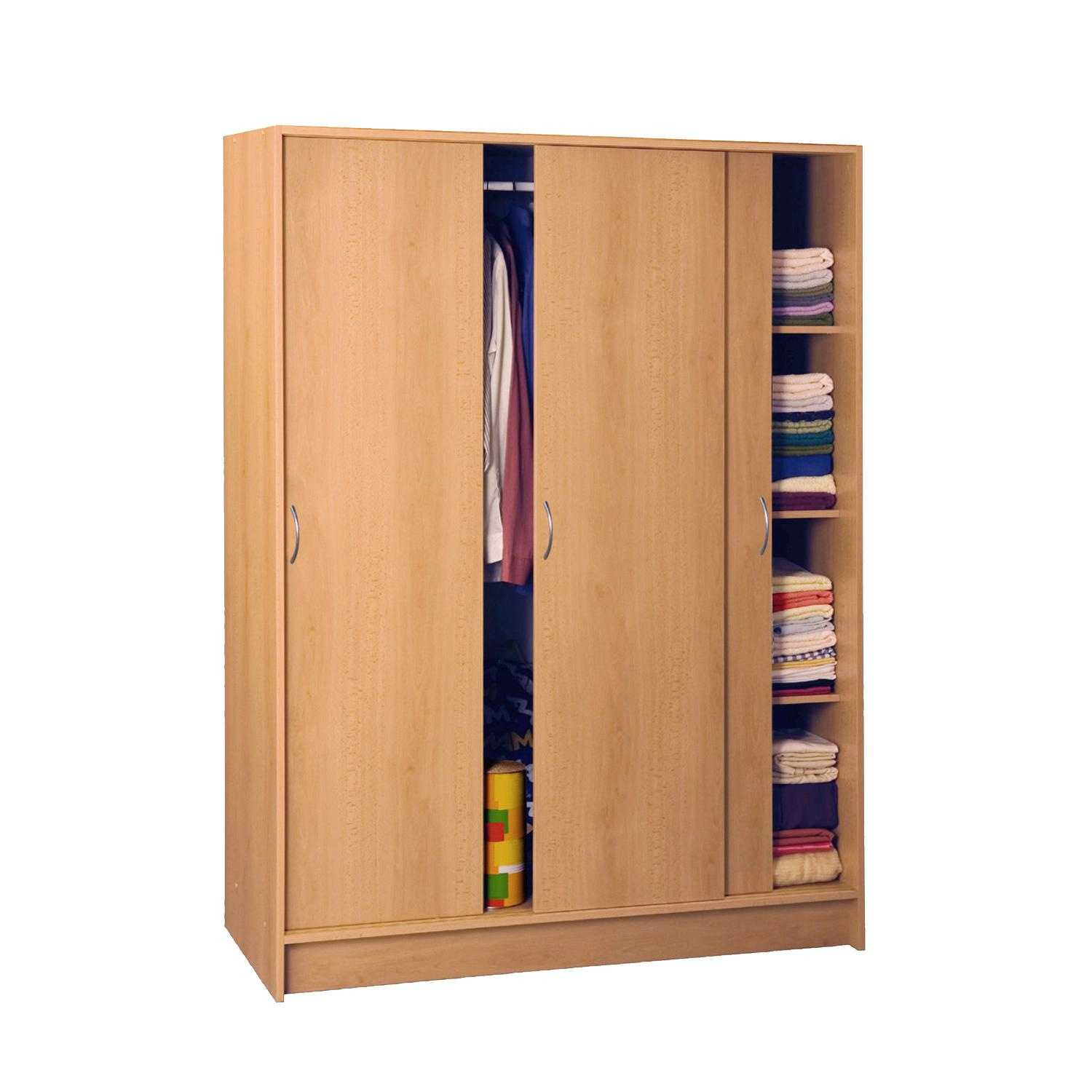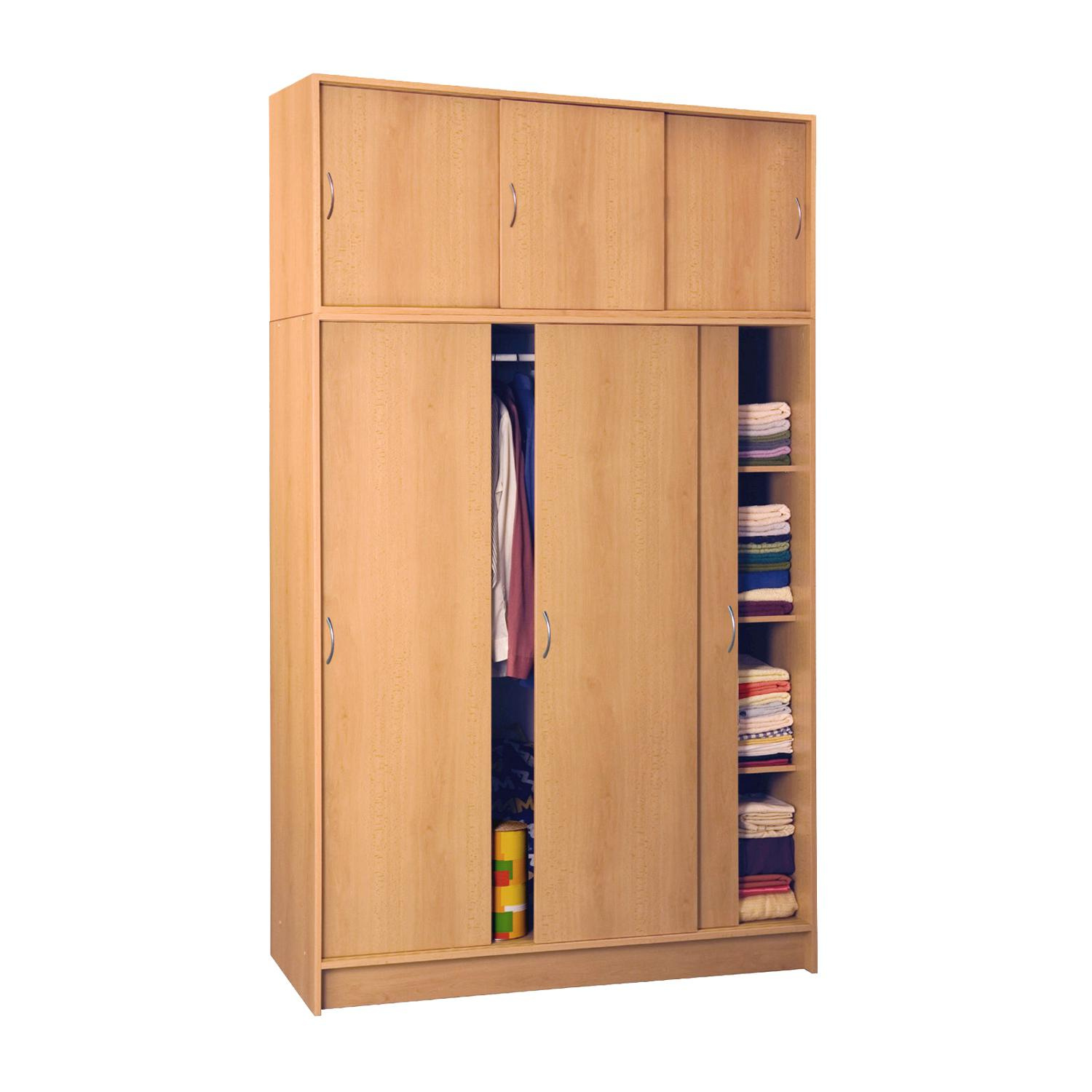 Skříň s posuvnými dveřmi 3323 v provedení buk je dobrou volbou do ložnice, studentského pokoje i šatny. Jednoduchá a klasicky dělená skříň v poměru 2:1, kdy se v širší části nachází pevná šatní tyč a v užší části pak tři prostorné variabilní police, je vhodná i do ubytovacích zařízení, hotelů a pronájmů. Pokud navíc potřebujete uložit méně používané věci, doporučujeme vám nástavec 3223A. Zboží je dodáváno v demontu.
