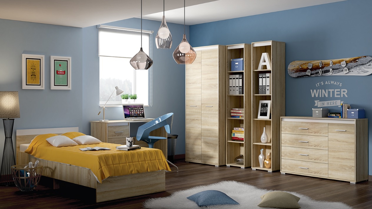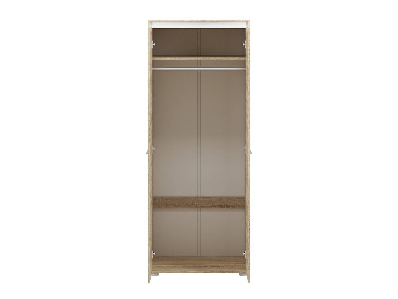 Nábytkový systém AVO je moderní a minimalistický. Nábytek je vyroben z kvalitního lamina, které je odolné proti poškrábání, vlhkosti a vysokým teplotám. Korpus i dvířka jsou v dezénu dub sonoma. Hrana ABS představuje stálost, odolnost proti nárazu, estetickou úpravu. Odolná proti vlhkosti, nedeformuje se a neuvolní od povrchu. Šatní skříň je dvoudvéřová, bez zrcadla, uvnitř skříně je šatní tyč a jedna police. Zboží je dodáváno v demontu.