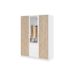 Šatní skříň Balu Lux je vyrobena z laminované dřevotřísky s ABS hranami v dekoru bílá v kombinaci s dub wotan. Skříň ozvláštňují lamely. Zboží dodáváme v demontu.