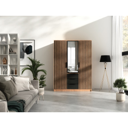 Šatní skříň BALI LUX D3 dub wotan/ černá se zrcadlem