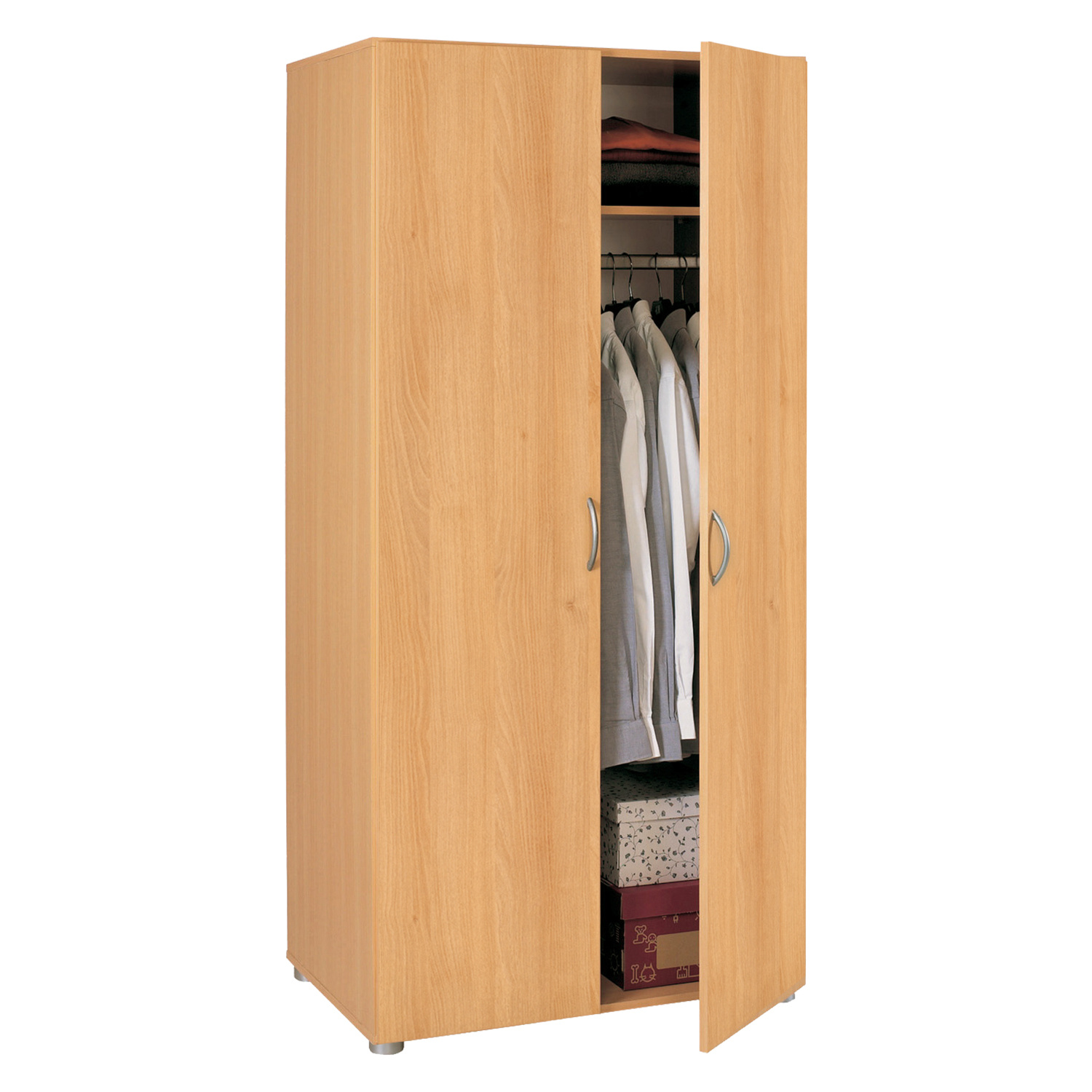 Šatní skříň v barevném provedení buk. Šatní skříň vybavená šatní tyčí a policí rozměr police (š/h) 78×40 cm. Zboží dodáváme v demontu.