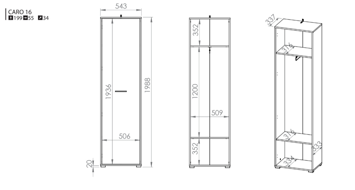 Šatní skříň je vyrobena z kvalitního lamina o tl.16 mm v dezénu sonoma světlá. Tato skříň je doplněna o černé nožičky a úchytku. Zboží je dodáváno v demontu.