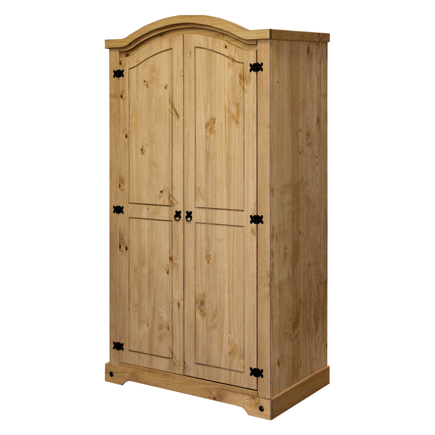 Dvoudveřová šatní skříň z masivní borovice, voskovaná v medovém odstínu. Šatní skříň je vybavena šatní tyčí a policí na klobouky. Skříň má stylové kovové ozdobné úchytky soucást sestavy Corona. Zboží dodáváme v demontu.