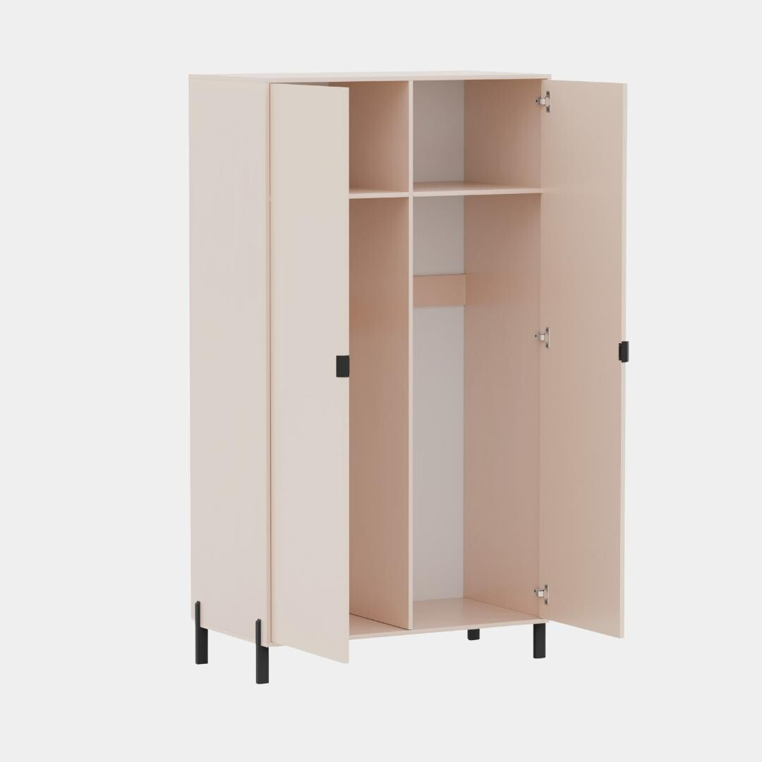 Šatní skříň Cremona je vyrobena z kvalitní laminované dřevotřísky o síle 16 mm v pískově béžové barvě. Nohy v černé barvě jsou kovové. Zboží dodáváme v demontu.