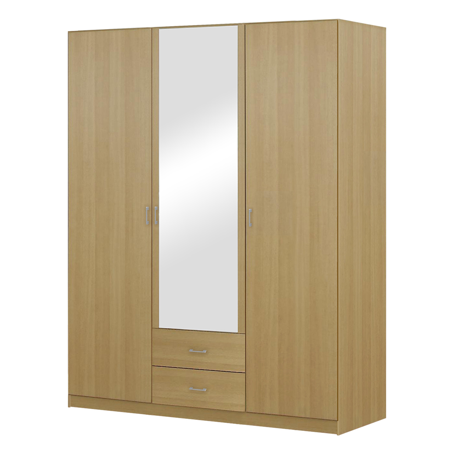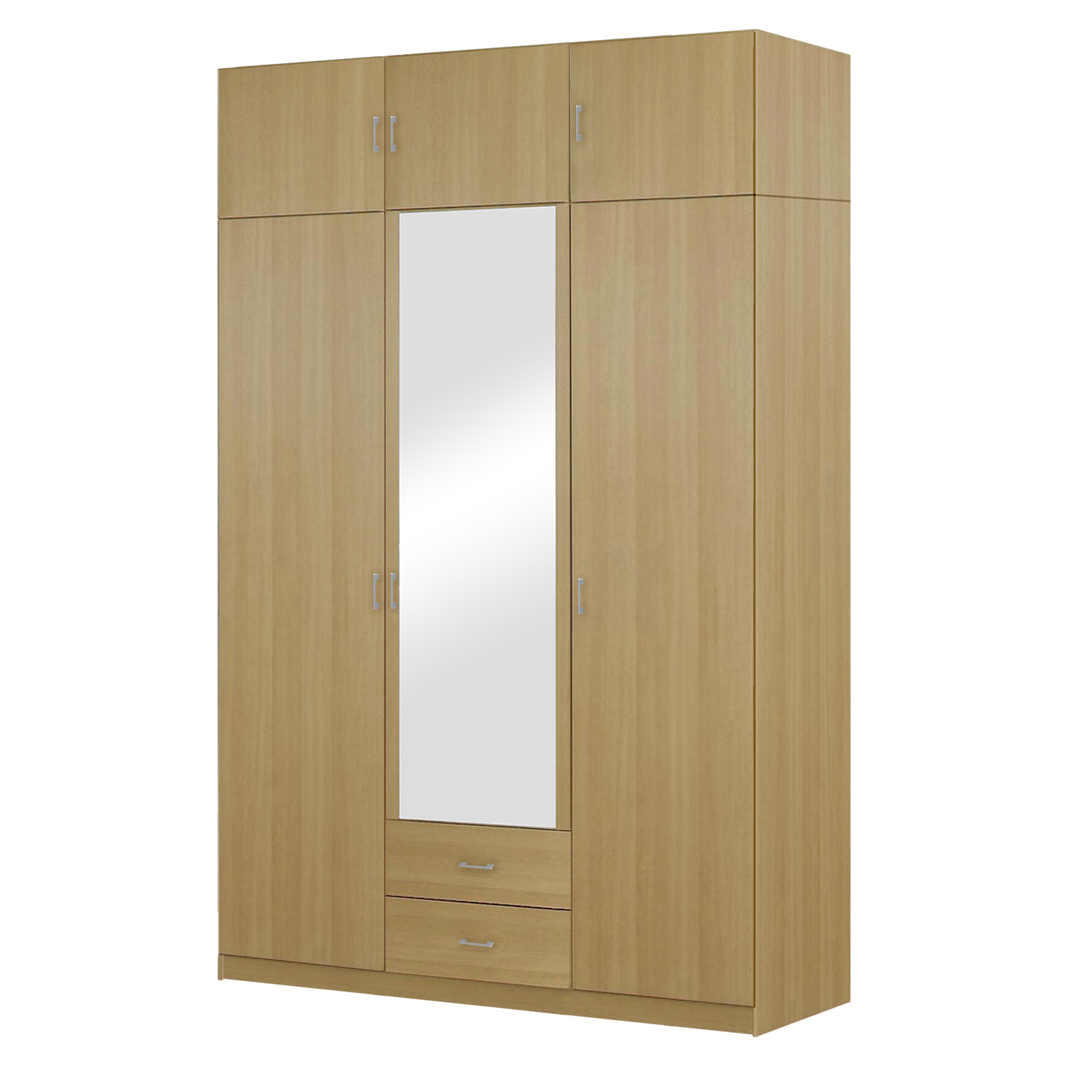 Skříň ESO třídveřová 11530 v barevném provedení buk krásně zapadne do ložnice vybavené právě nábytkem v provedení buk. Třídveřová skříň ESO je rozdělena na širší a užší část, v obou se nachází pevná šatní tyč a police vhodná na doplňky. Pod prostředními zrcadlovými dvířky v širší části skříně se nalézají ještě dvě malé zásuvky k uložení drobného prádla. Zrcadlové dveře opticky zvětší prostor ložnice, na skříň lze navíc umístit i praktický nástavec 11535. Zboží je dodáváno v demontu.