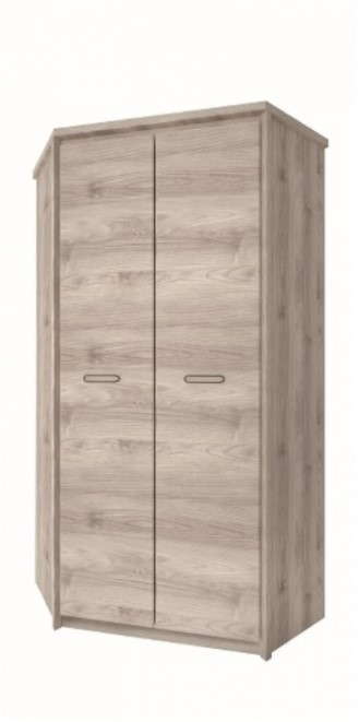 Rohová šatní skříň Jazz 2D v dezénu kaštan nairobi / onyx. Šatní skříň z lamina o síle 32mm (korpusy a horní deska) a 16mm (čela zásuvky a dvířek) chrání ABS hrany. Skříň má dvoje dveře a uvnitř police i šatní tyč. Nožičky jsou plastové, úchyty kovové. Univerzální systém nábytku Jazz doporučujeme do obývacího pokoje, pracovny, ložnice i studentského pokoje. Zboží dodáváme v demontu.