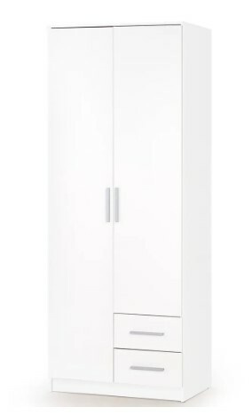 Skříň Lima je vyrobena z kvalitního lamina v barvě bílá/bílý lesk, hrany ABS. Tato šatní skříň má dvoje dvířka, 5 polic, dvě zásuvky a šatní tyč, díky kterým tak doplníte svůj pokoj o další úložný prostor navíc. Kvalitní materiál a provedení zaručuje jeho dlouhou životnost a funkčnost. Zboží je dodáváno v demontu.