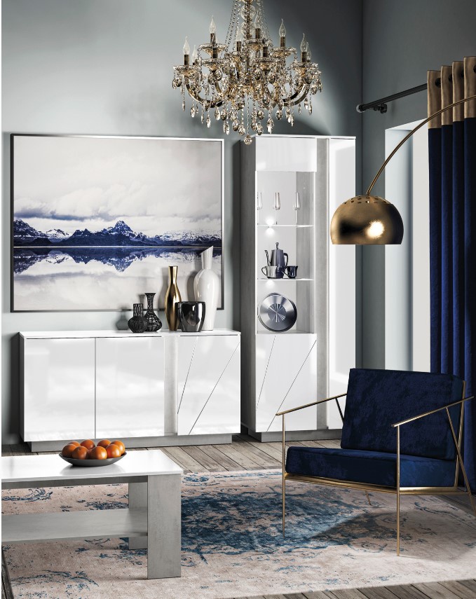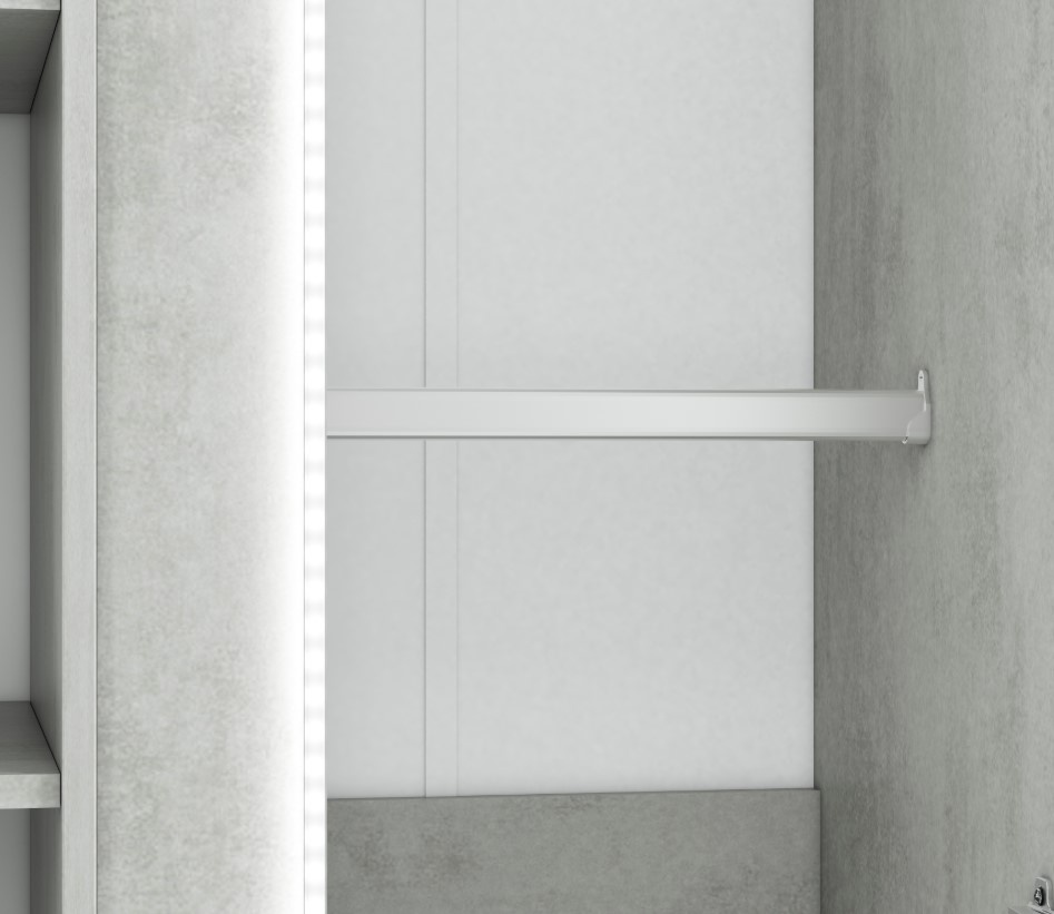 Dokonalá kolekce LUMENS v elegantním stylu je vyrobena z kvalitního lamina s ABS hrany. Šatní skříň ze sestavy LUMENS je dvoudveřová v dezénu bílý lesk/stříbrný beton. Šatní skříň má dotykový spínač světla (dekorativní LED lišta v ceně). Kvalitní lamino je odolné proti poškrábání, vlhkosti a vysoké teplotě. Zásuvky a dvířka mají bezúchytový systém a zvýšenou nosnost. Kolekce LUMENS v elegantním stylu je navržena pro zákazníky, kteří milují moderní design. Zboží dodáváme v demontu.