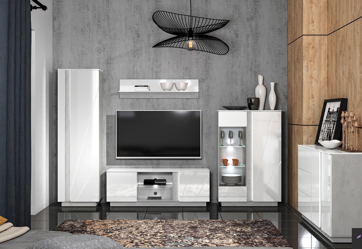 Šatní skříň LUMENS 01 bílý lesk/stříbrný beton