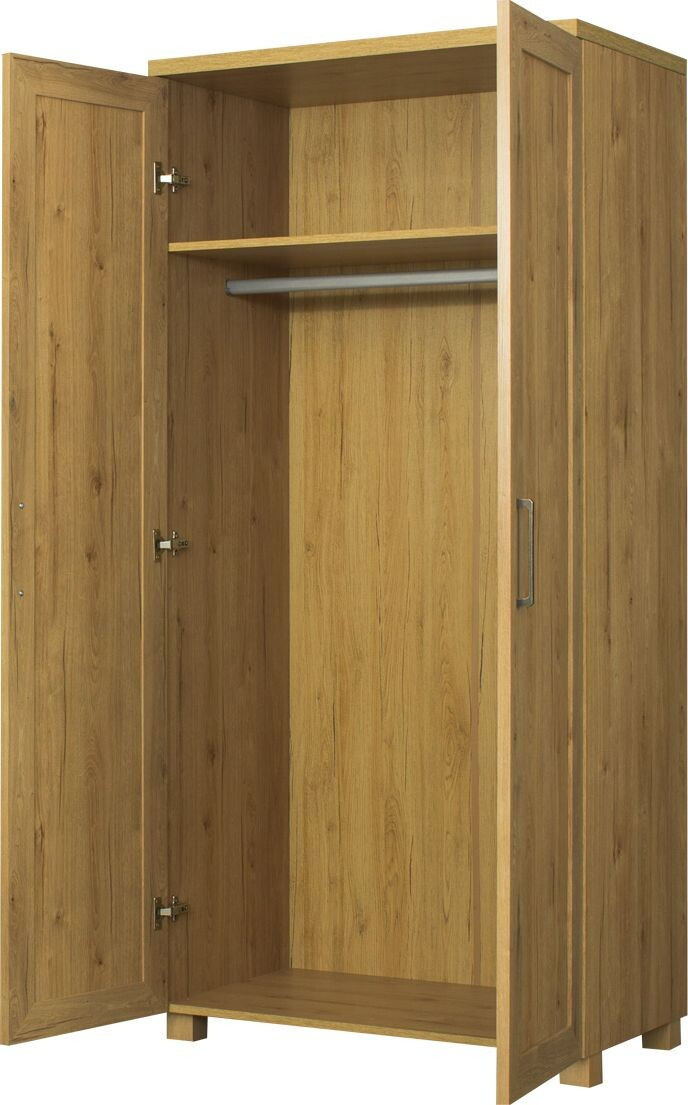Dvoudveřová skříň MAJORKA v dezénu dub soma tmavý. Skříň má šatní tyč a jednu polici. Ke skříni je možno zakoupit nádstavec MA46. Zboží dodáváme v demontu.