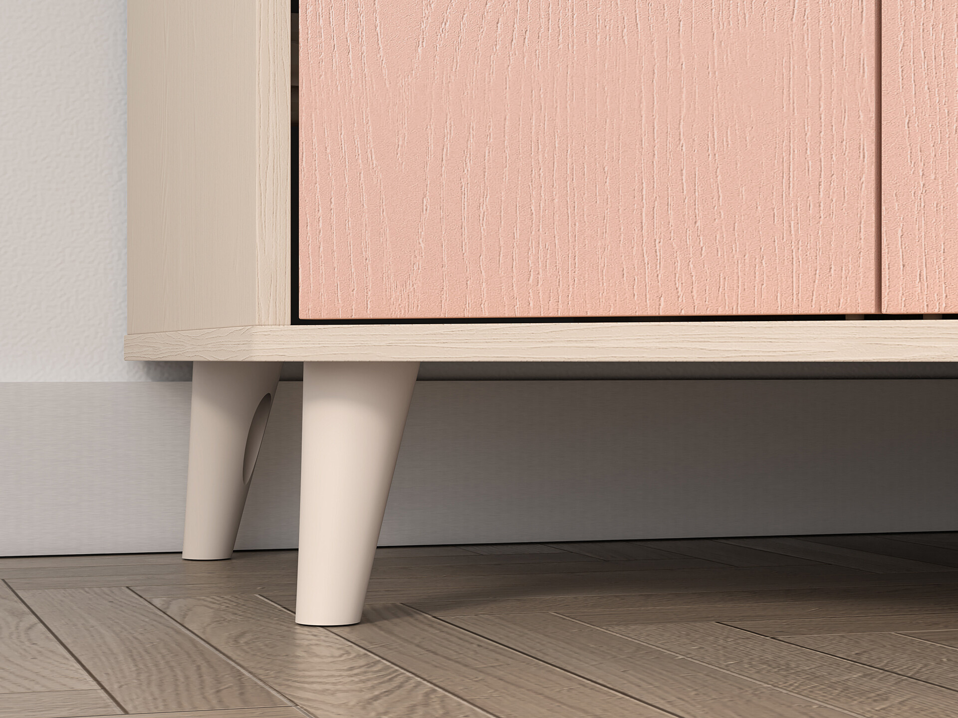 Šatní skříň Mevel je vyrobena z vysoce kvalitní laminované dřevotřískové desky s ABS hranou v elegatní kombinaci béžového ( pískového) korpsu a růžových (millenial) dvířek v matném provedení. Dvířka s tichým dovíráním, pro bezpečné a tiché otevírání, s béžovými kulatými úchyty. Nosnost jedné police 10 kg. Zboží dodáváme v demontu.