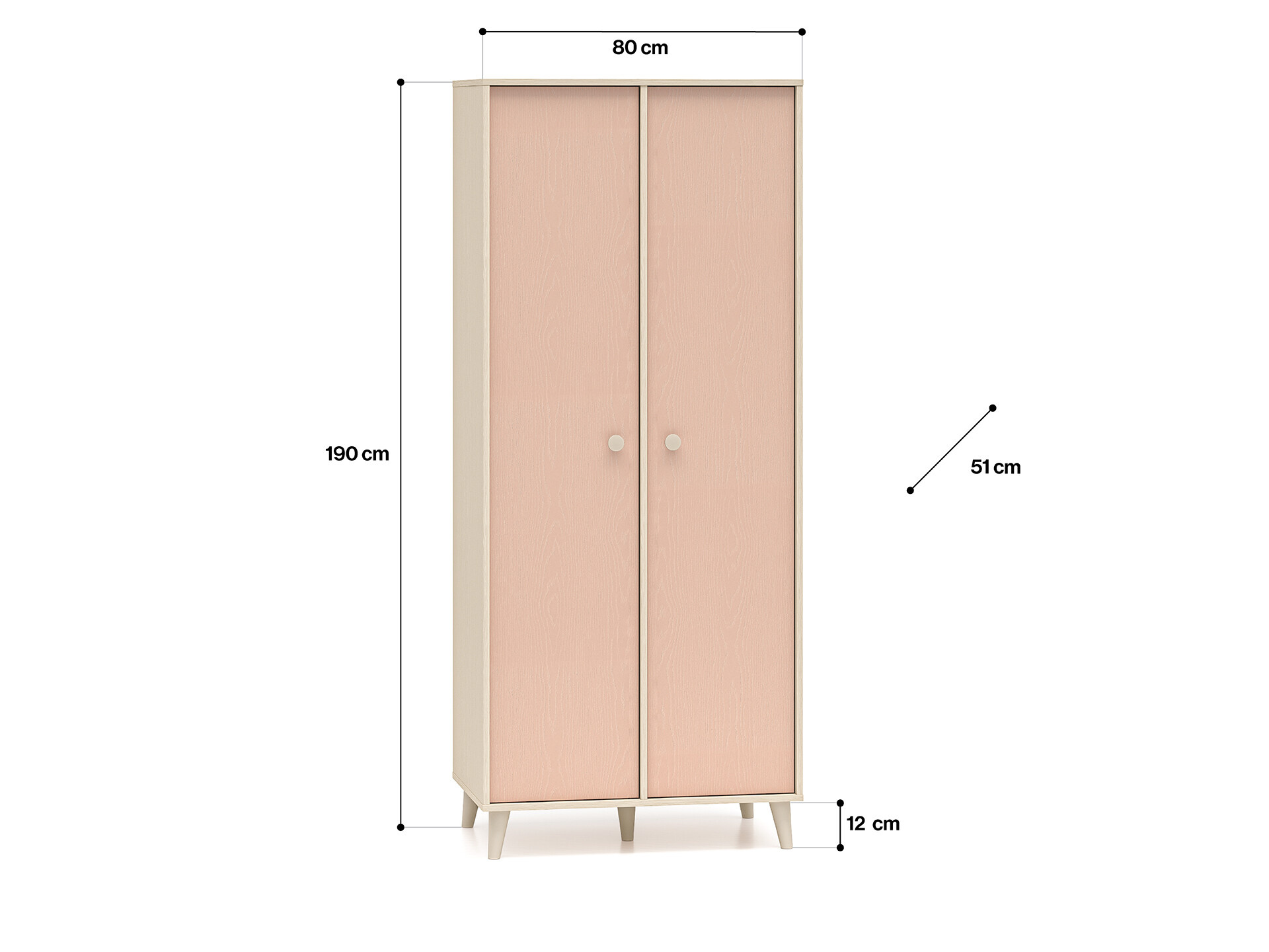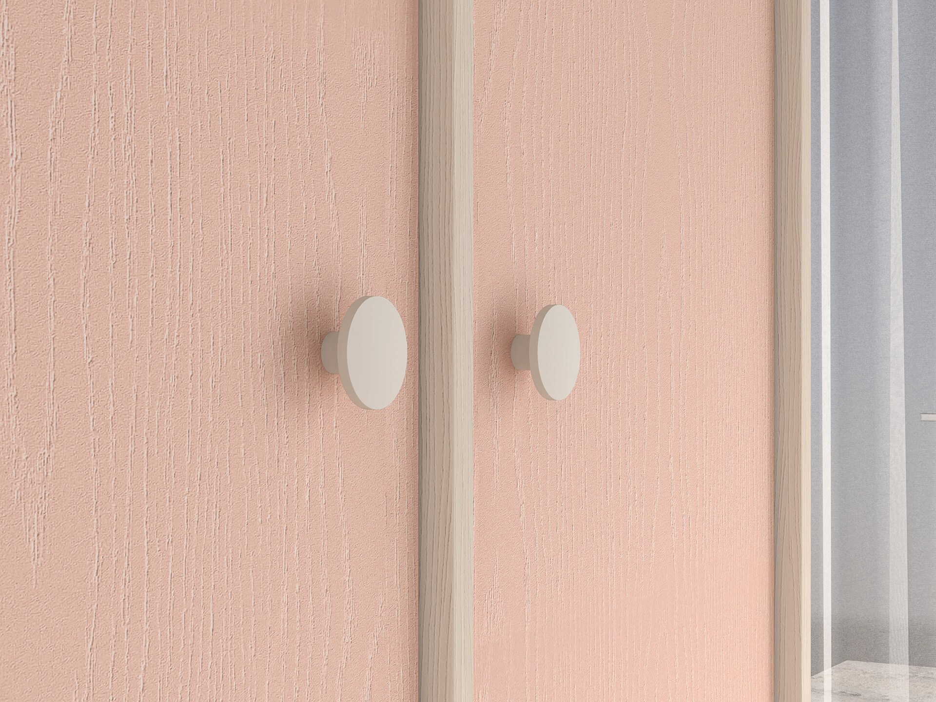 Šatní skříň Mevel je vyrobena z vysoce kvalitní laminované dřevotřískové desky s ABS hranou v elegatní kombinaci béžového ( pískového) korpsu a růžových (millenial) dvířek v matném provedení. Dvířka s tichým dovíráním, pro bezpečné a tiché otevírání, s béžovými kulatými úchyty. Nosnost jedné police 10 kg. Zboží dodáváme v demontu.