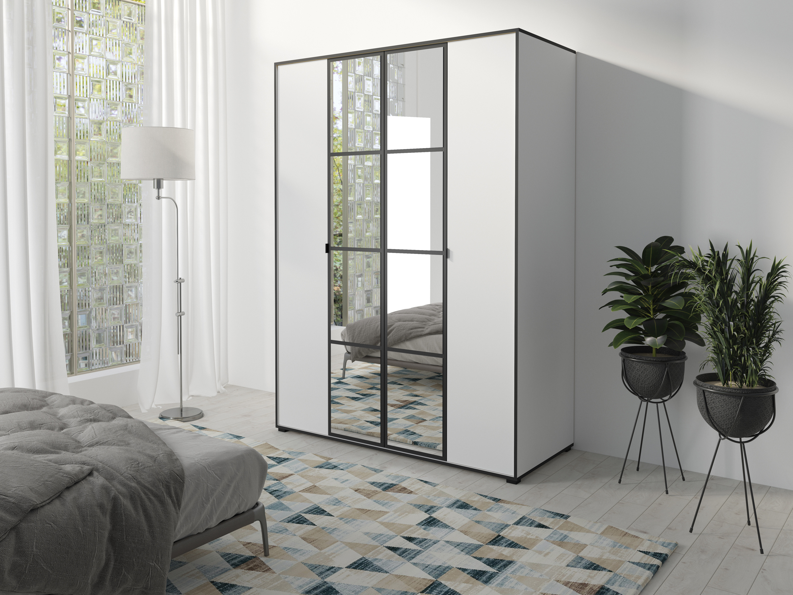 Šatní skříň OSLO I se zrcadlem je vyrobena z kvalitního lamina v barevném provedení bílá/černá. V pravé části skříně se nachází šatní tyč a police, v levé části jsou čtyři police. Lze ji použít samostatně nebo k jakémukoliv nábytku ve stejném dekoru. Zboží je dodáváno v demontu.