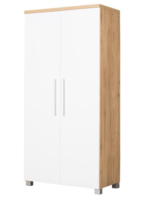 Dvoudveřová šatní skříň Panama v dezénu dub soma tmavý/ bílý lesk. Skříň je vybavená polici a šatní tyčí. Zboží dodáváme v demontu.