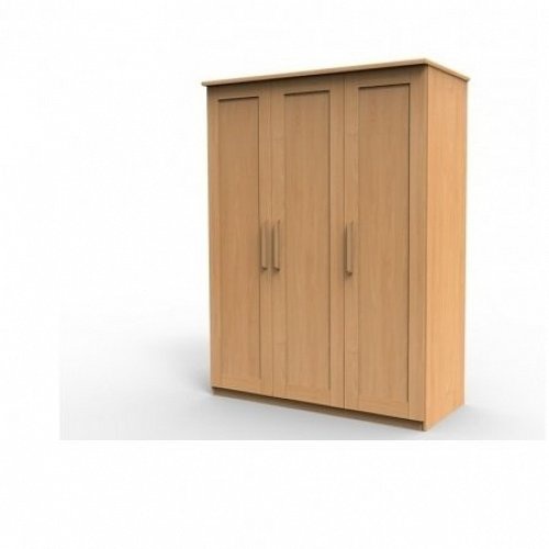 Tato třídveřová šatní skříň je vyrobena z masivu v barevném provedení buk cink(parketový desing). Tloušťka masivu 27/19 mm. Pravá, jednodveřová část skříně je policová s pěti policemi a levá, dvoudveřová část je šatní s jednou policí v horní části. Úchytky jsou z masivu. Zboží dodáváme v demontu.