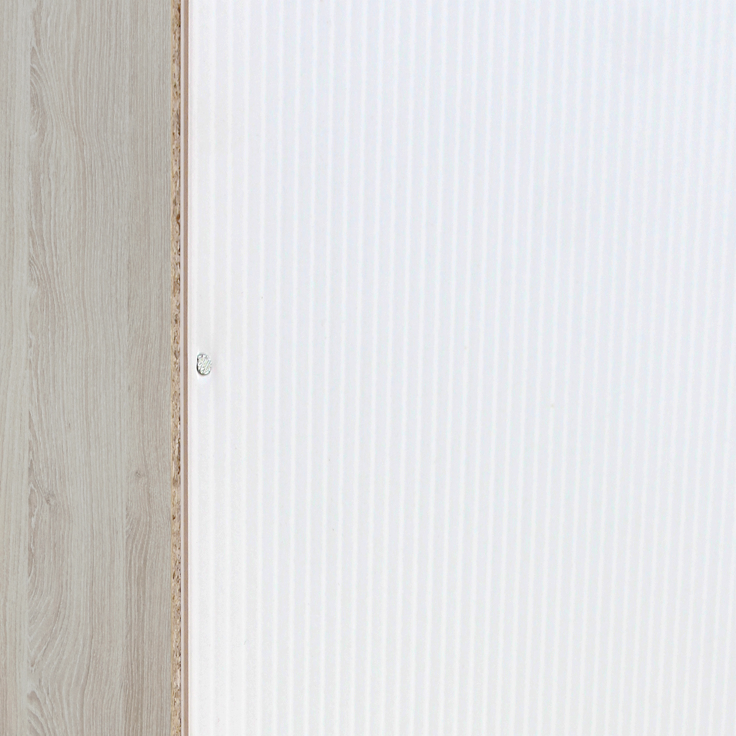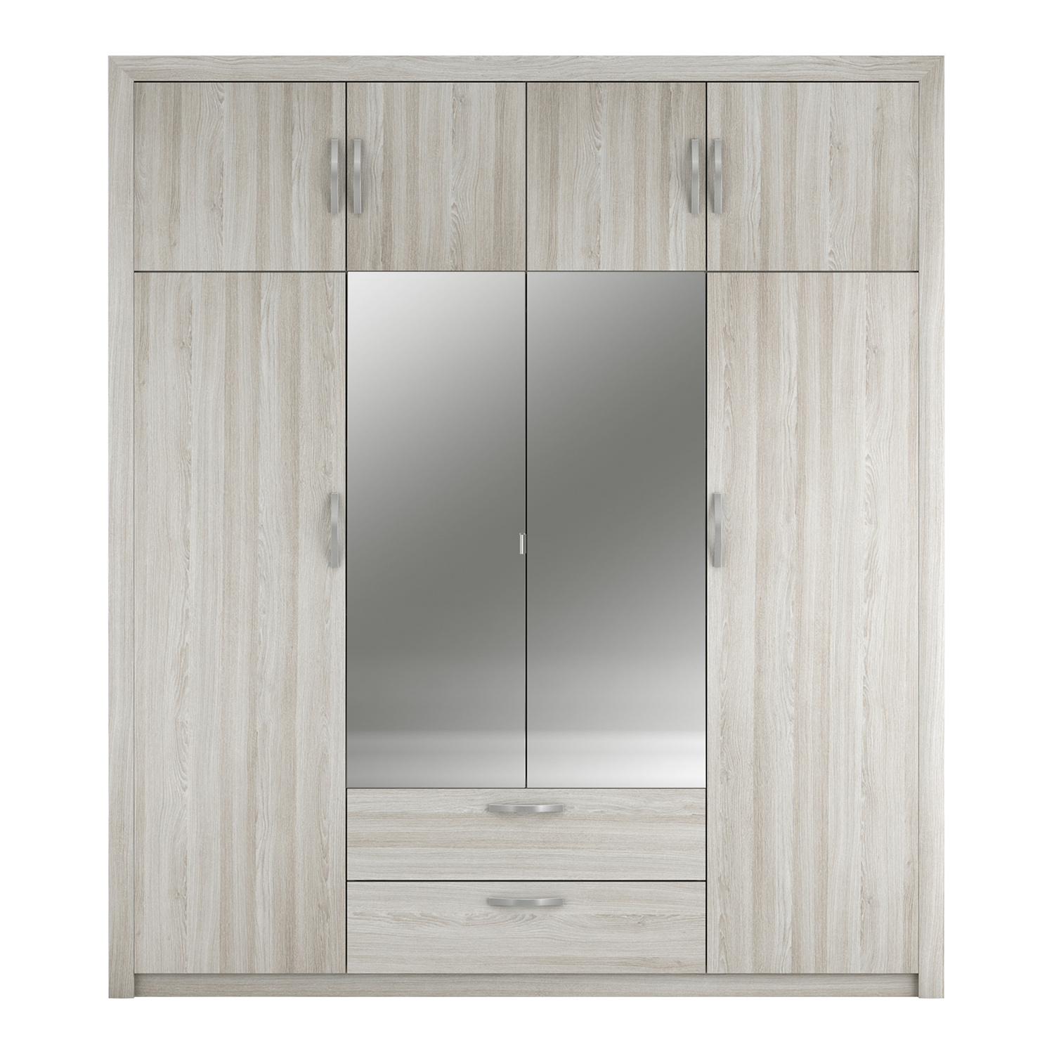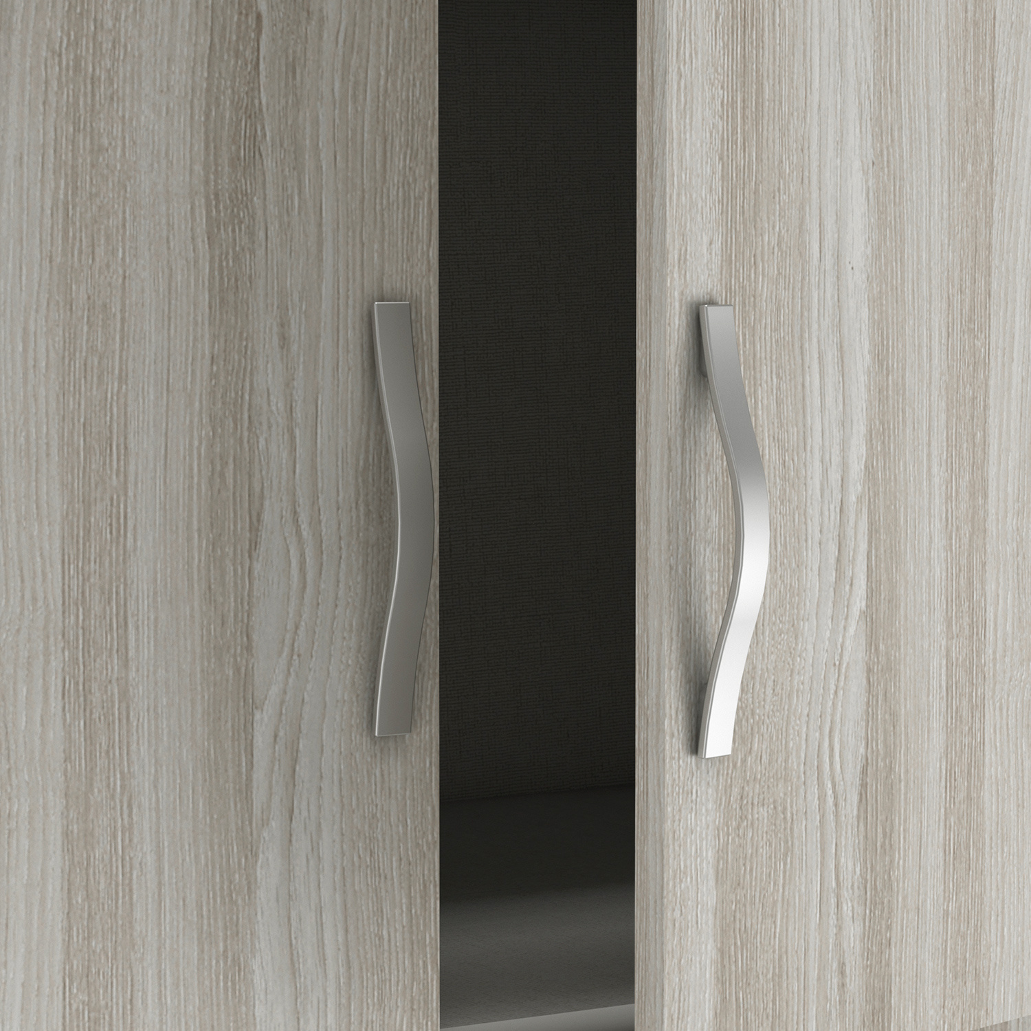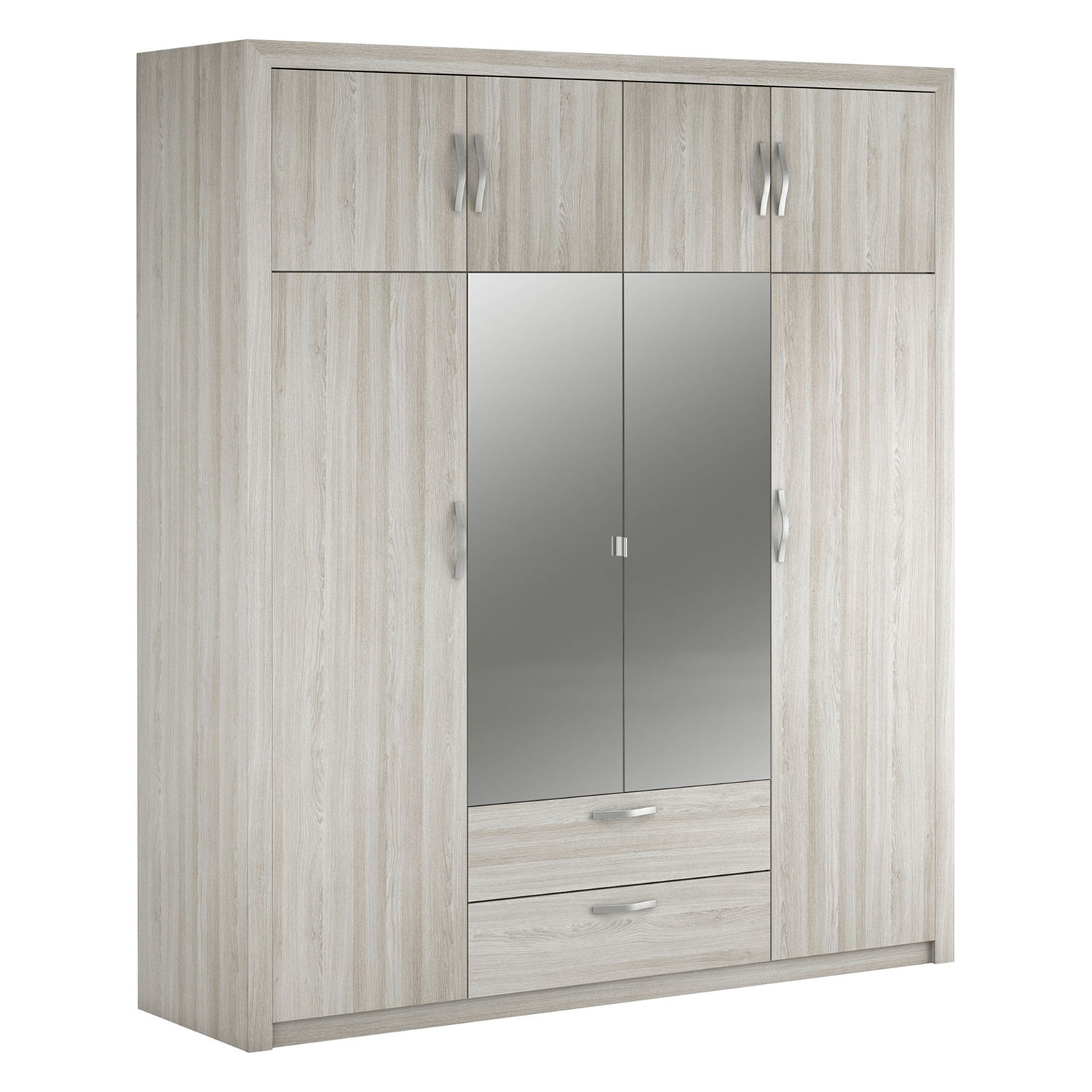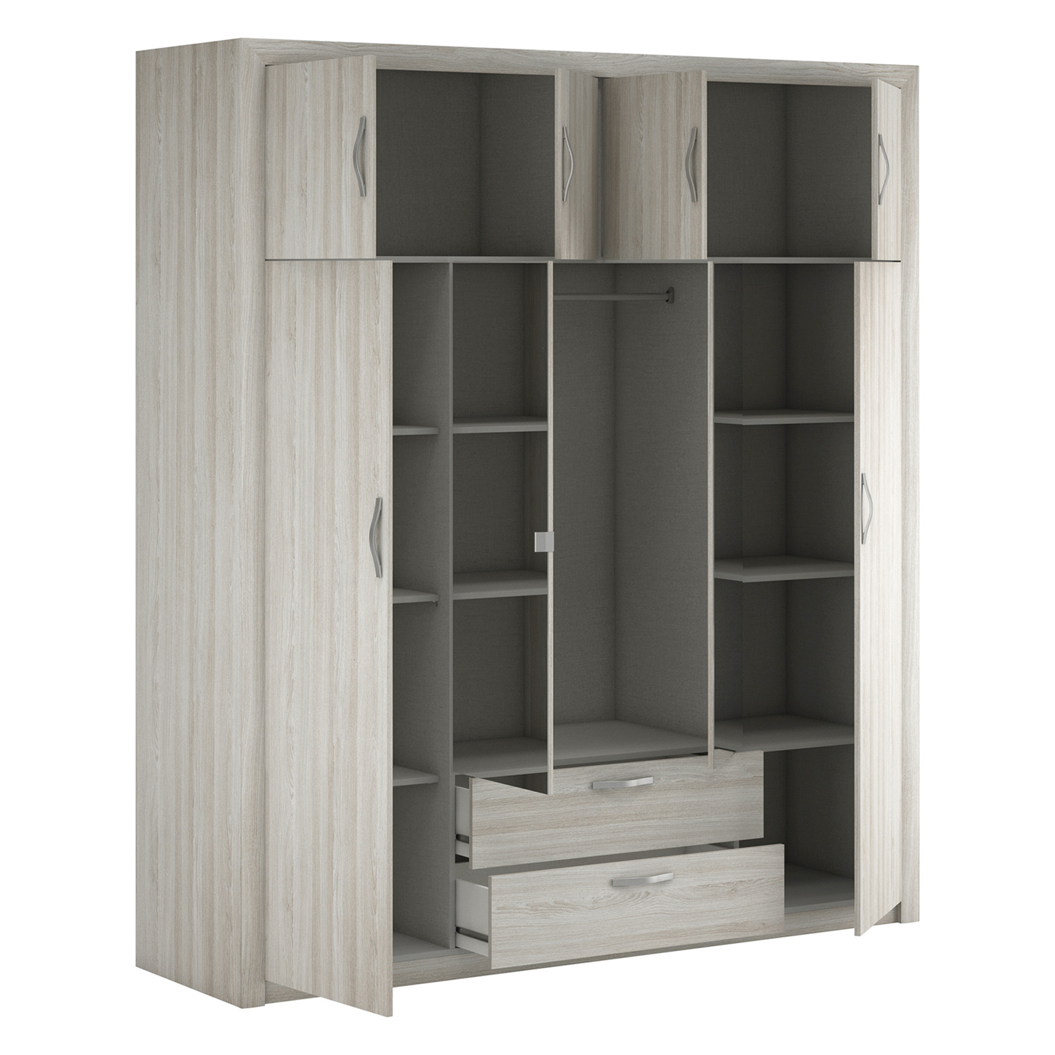 Šatní skříň Pluton je vyrobena z laminované dřevotřísky v barevném provedení dub Shannon. Nástavec je rozdělený na 2 stejné částí a je součástí skříně. Každé užší části jsou 3 police z toho 2 variabilní rozměr police (š/h) 55 × 49 cm. Prostor je dělený v poměru 1:2:1, širší část zrcadlové dveře, šatní tyč, v dolní části 2 zásuvky s kovovými pojezdy rozměr zásuvky (š/h/v) 79 × 37 × 15 cm záda dutinkový plast. Zboží dodáváme v demontu.