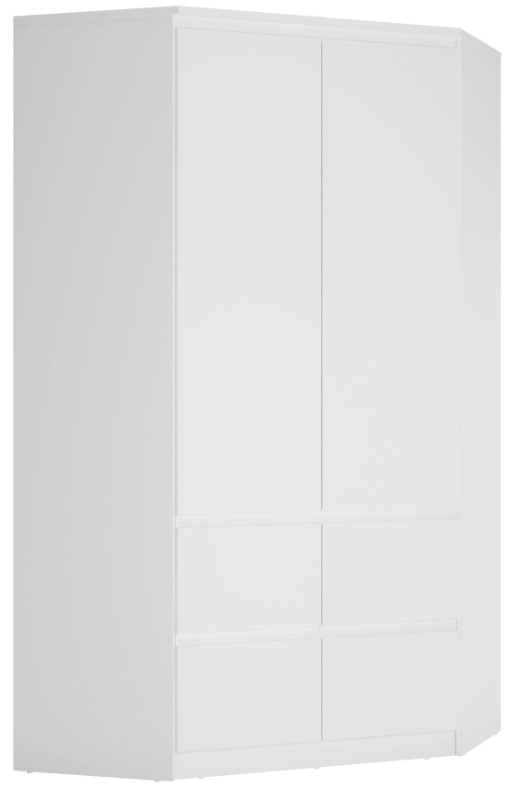 Moderní rohová šatní skříň BOSTON je vyrobená z kvalitního lamina MDF v dezénu korpus bílý lesk a dvířka bílý lesk. Skříň je dvoudveřová a má 4 zásuveky. Zásuvky a kování jsou velice robustní a kvalitní. Elegantní kolekce nábytku BOSTON bílé barvy, rozjasní váš domov a dodájí mu styl. Zboží dodáváme v demontu.