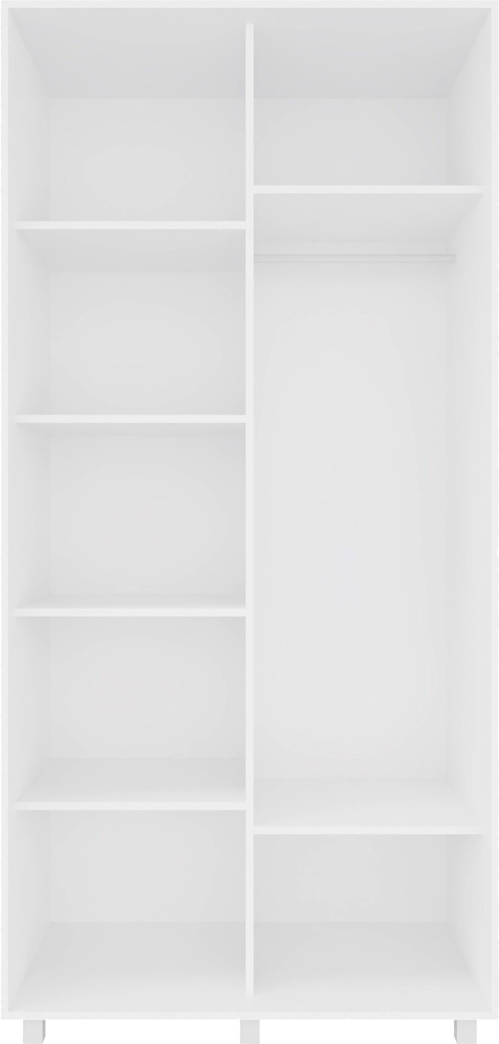 Šatní skříň z kvalitního lamina v bílé barvě je vybavena zrcadly na dvou posuvných dveřích. Skříně jsou vyrobeny z precizně vyrobených a odolných prvků. Zboží je dodáváno v demontu.