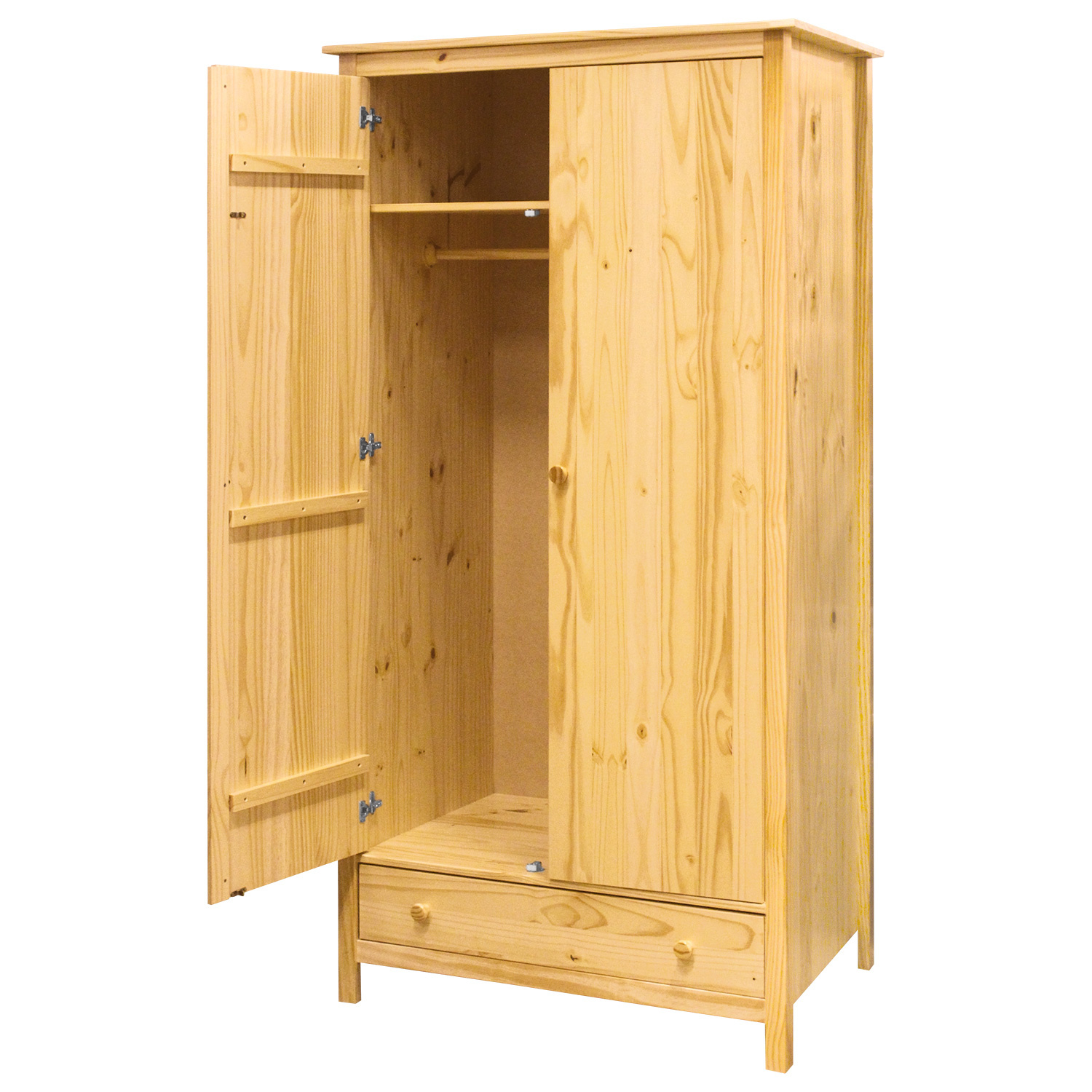 Skříň TORINO v provedení masiv borovice bude ozdobou každého pokoje. Robustní skříň je prakticky rozdělena na dvě části. Horní část skříně disponuje šatní tyčí a policí. Ve spodní části se nachází zásuvka s kovovými pojezdy. Do skříně tak přehledně uložíte veškerou garderobu včetně spodního prádla. Na velké skříni dokonale vynikne kresba dřeva. Nábytek v přírodním lakovaném odstínu si vás získá. Zboží dodáváme v demontu.