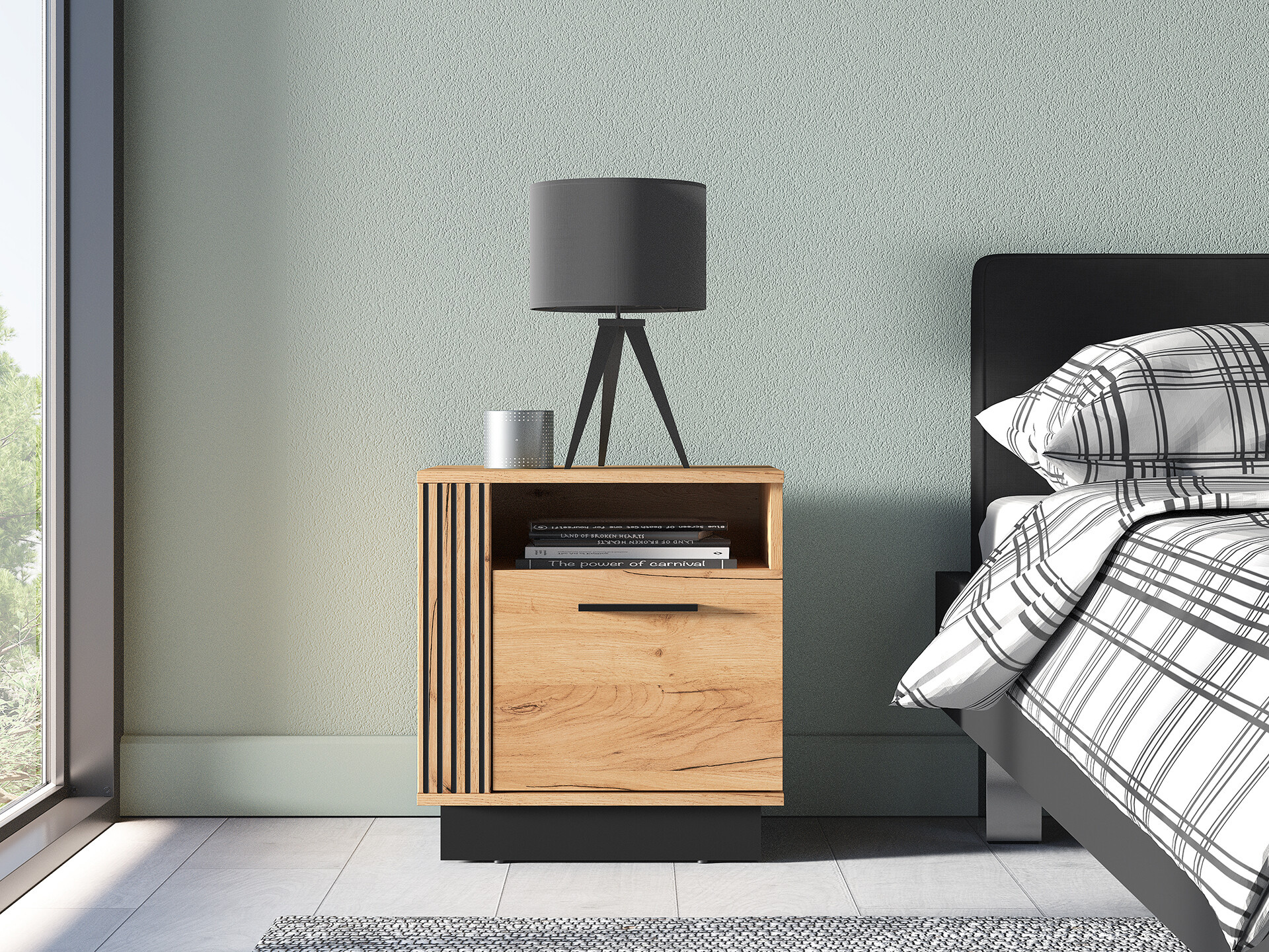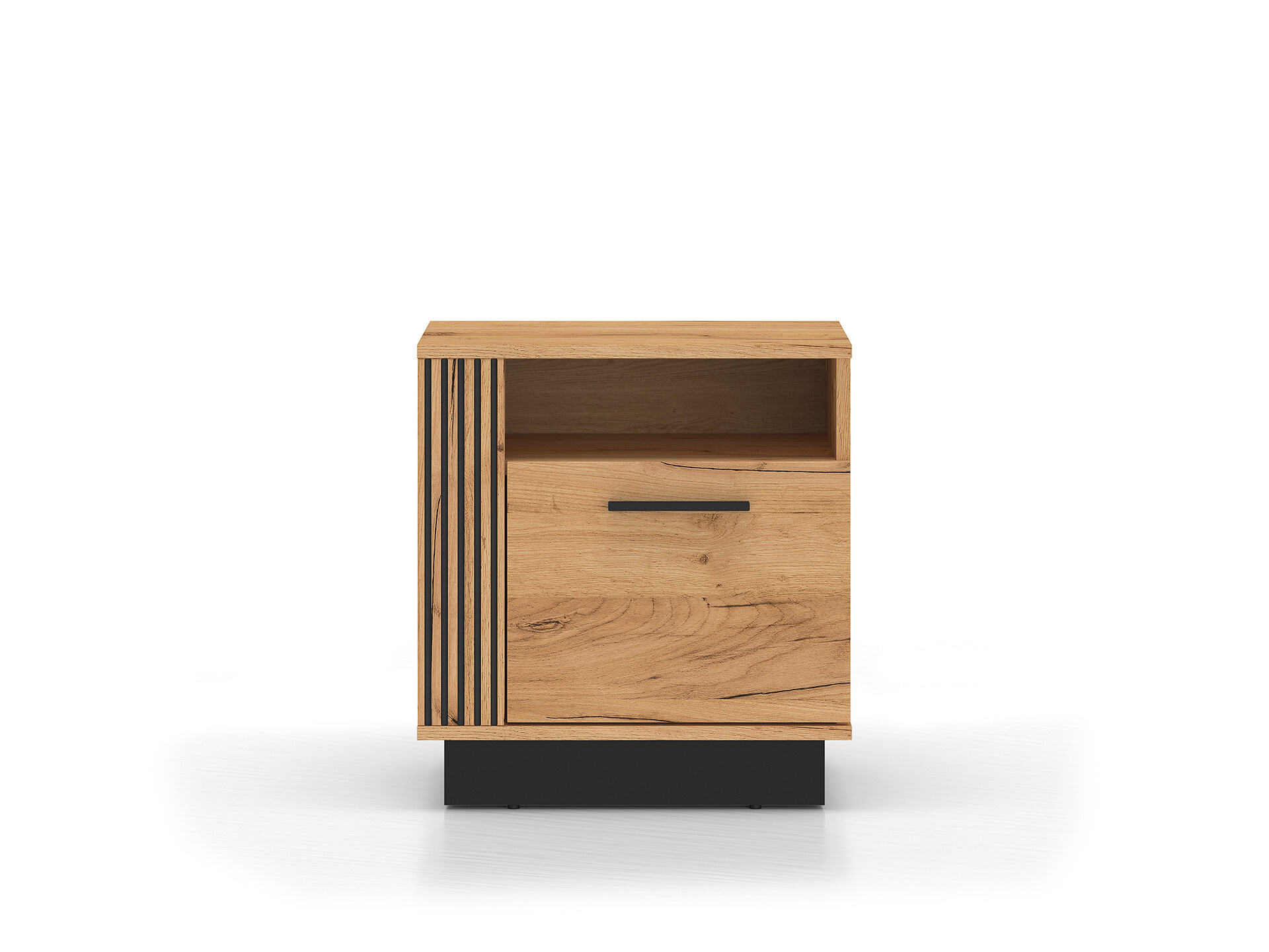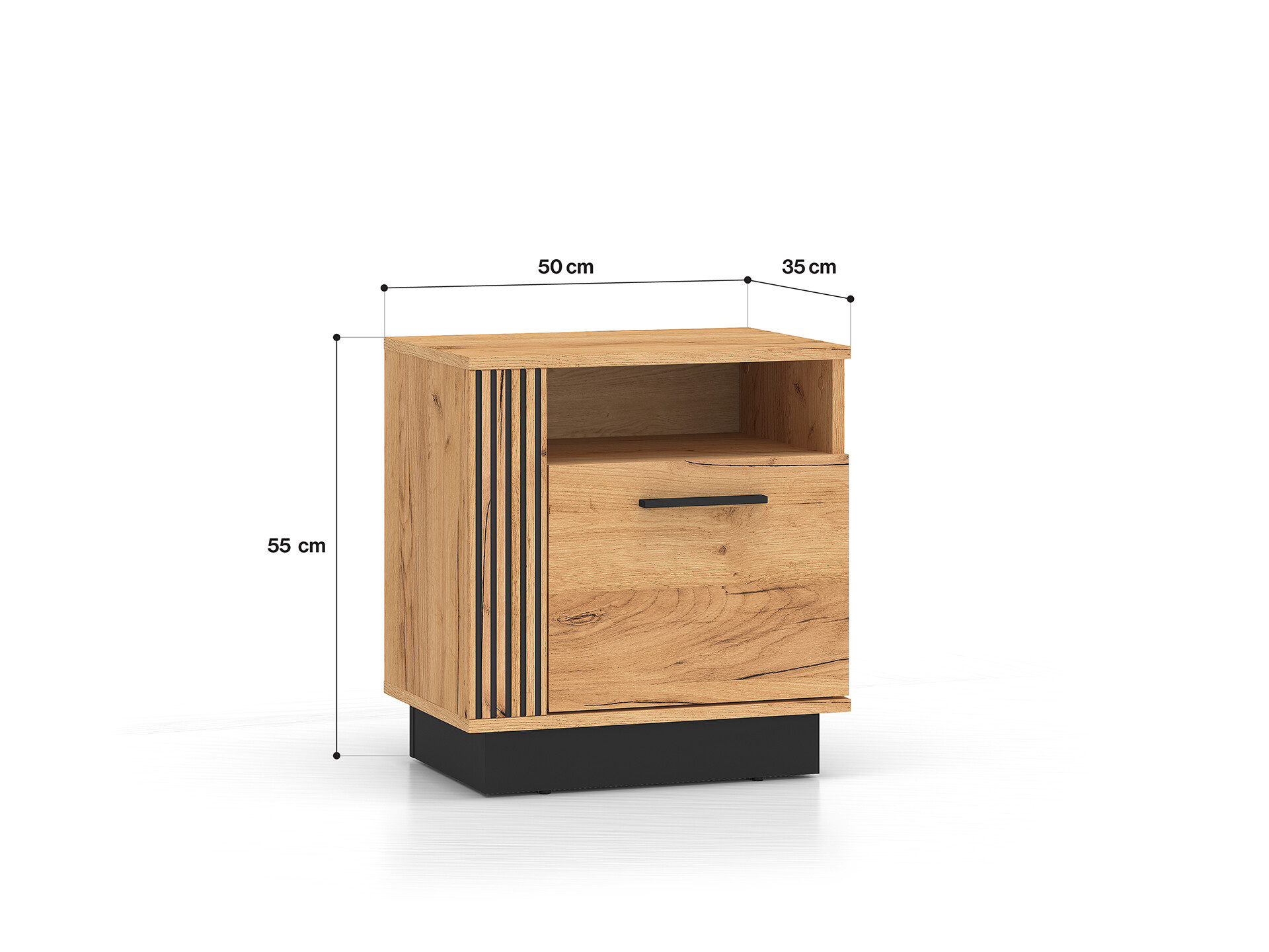 Noční stolek Urso je vyrobena z vysoce kvalitní laminované dřevotřískové desky s ABS hranou v provedení dub craft zlatý/ černá.  Zboží dodáváme v demontu.