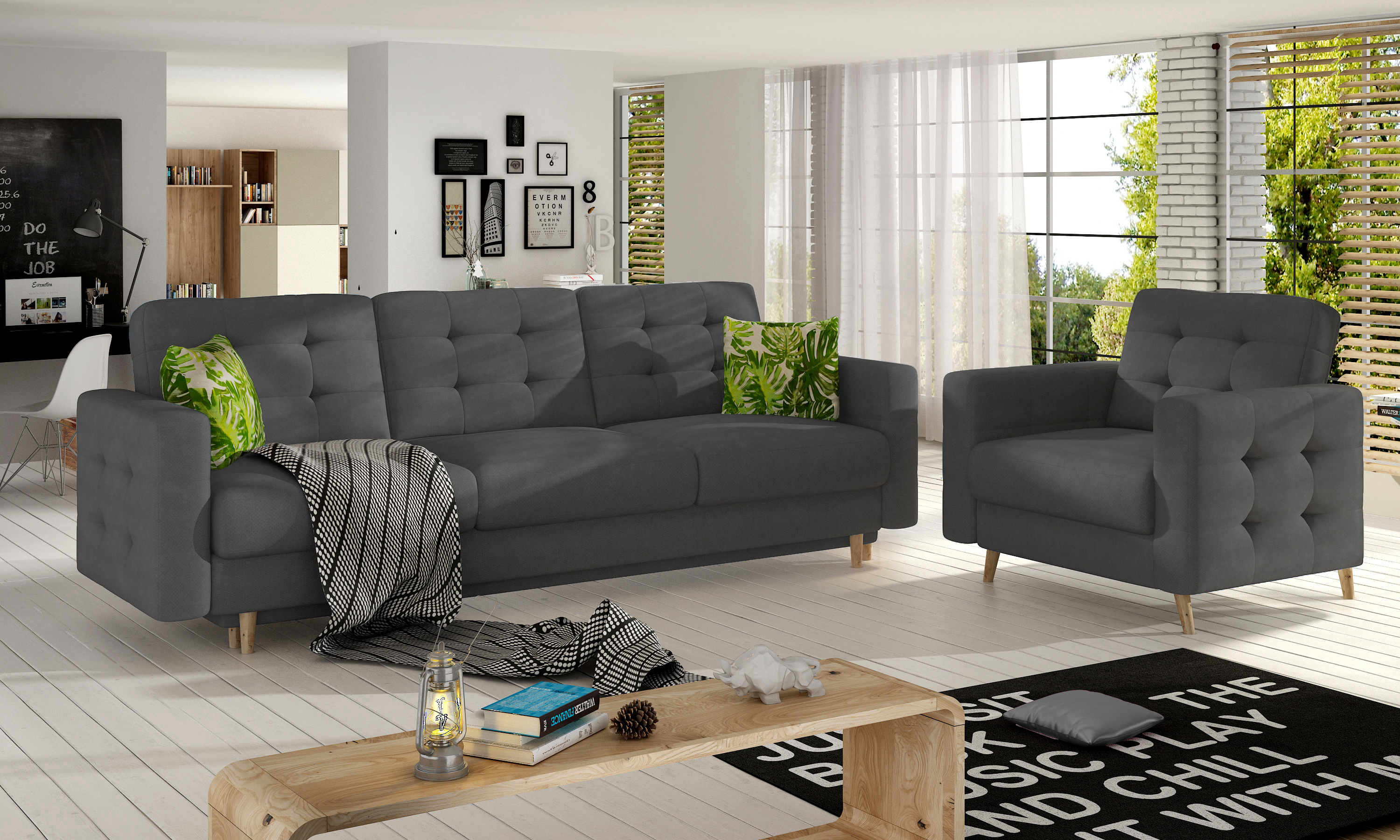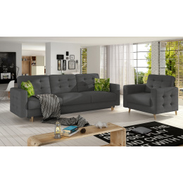 Sedací souprava Asgard v barevném provedení Ontario 96, polštáře Jungle 32 má ergonomicky profilovaná opěradla, vysoké područky a sedáky vyplněné robustními průběžnými pružinami polstrovanými pružnou pěnou T30. Rozkladem vznikne spací plocha 133x196 cm. Pohovka disponuje úložným prostorem.