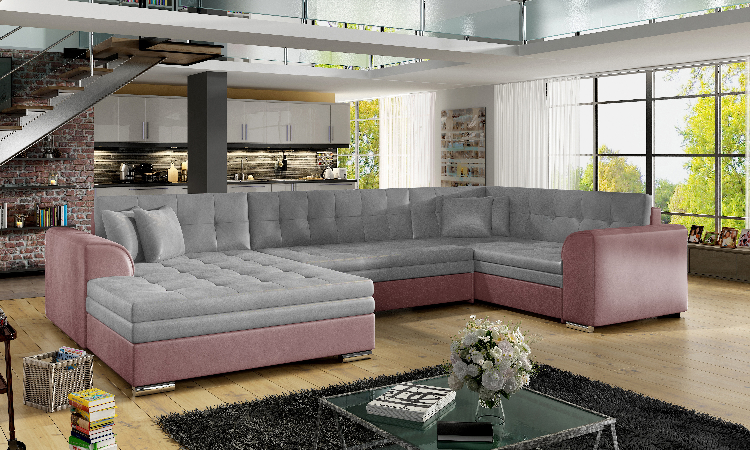 Sedací souprava Damario v barevném provedení Monolith 84/ Monolith 63 má sedáky vyrobené z odolné vlnité pružiny a elastické pěny T30. Rozkladem vznikne spací plocha 275x126 cm. Nožky má v barvě chromu.