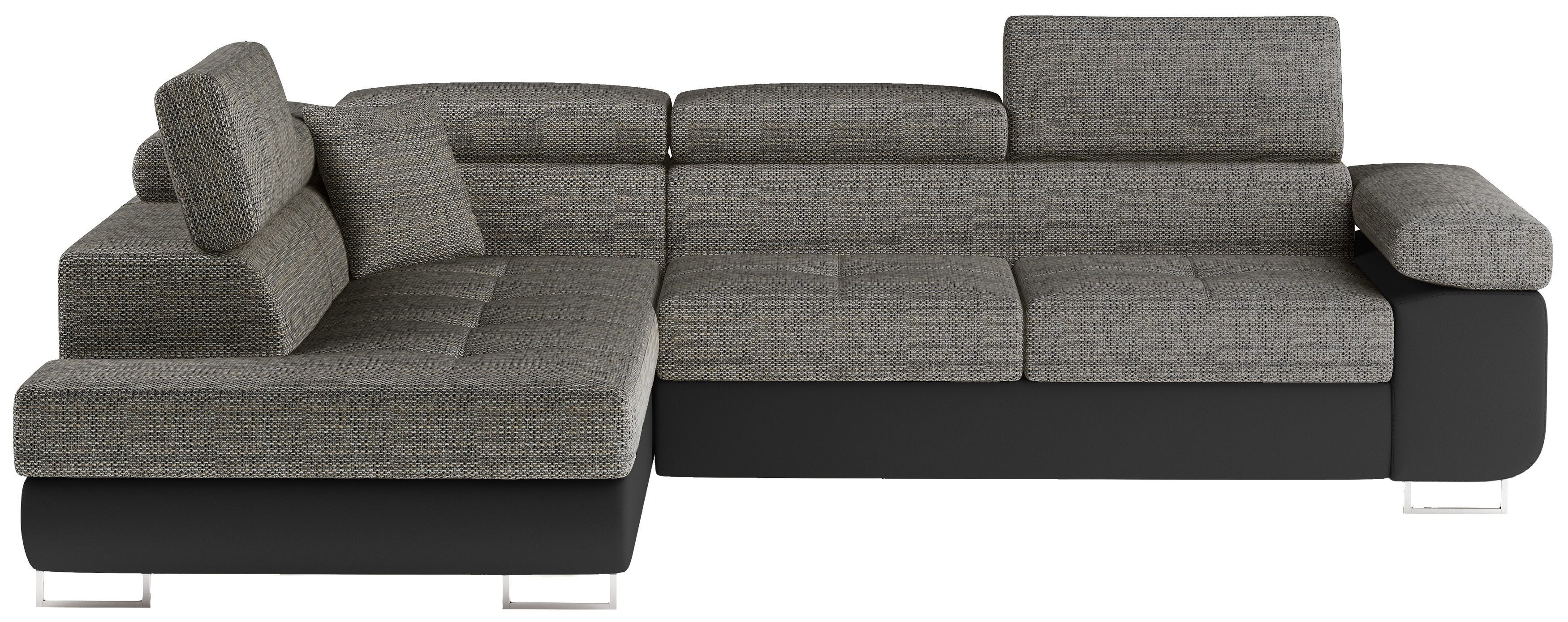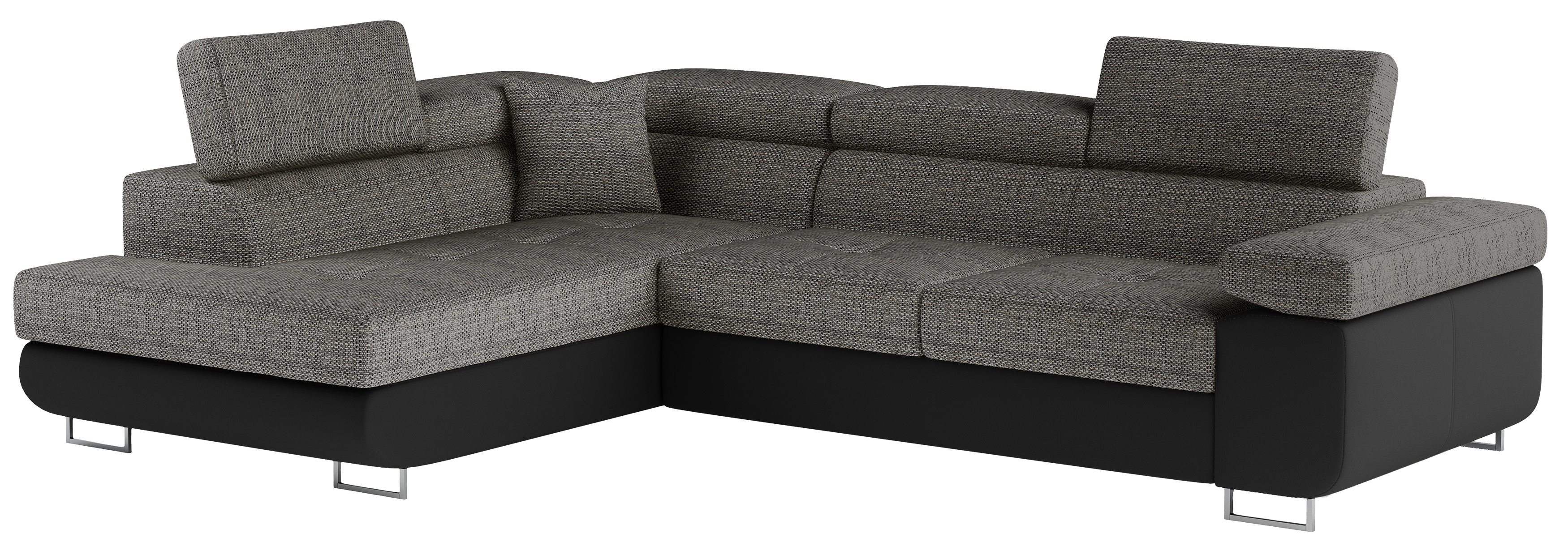 Rozkládací souprava Anton v barevném provedení látka Berlin 01/ eko kůže Soft 11. Výplň sedáků je vyrobena z vlnité pružiny a kvalitní PUR pěny T30. Souprava disponuje nastavitelnými opěrkami hlavy a úložným prostorem. Vytažení spodní části vznikne spací plocha 123x210 cm. Šířka područky 31 cm. Kovové nožky o šířce 20 cm a výšce 9 cm. Provedení levé.