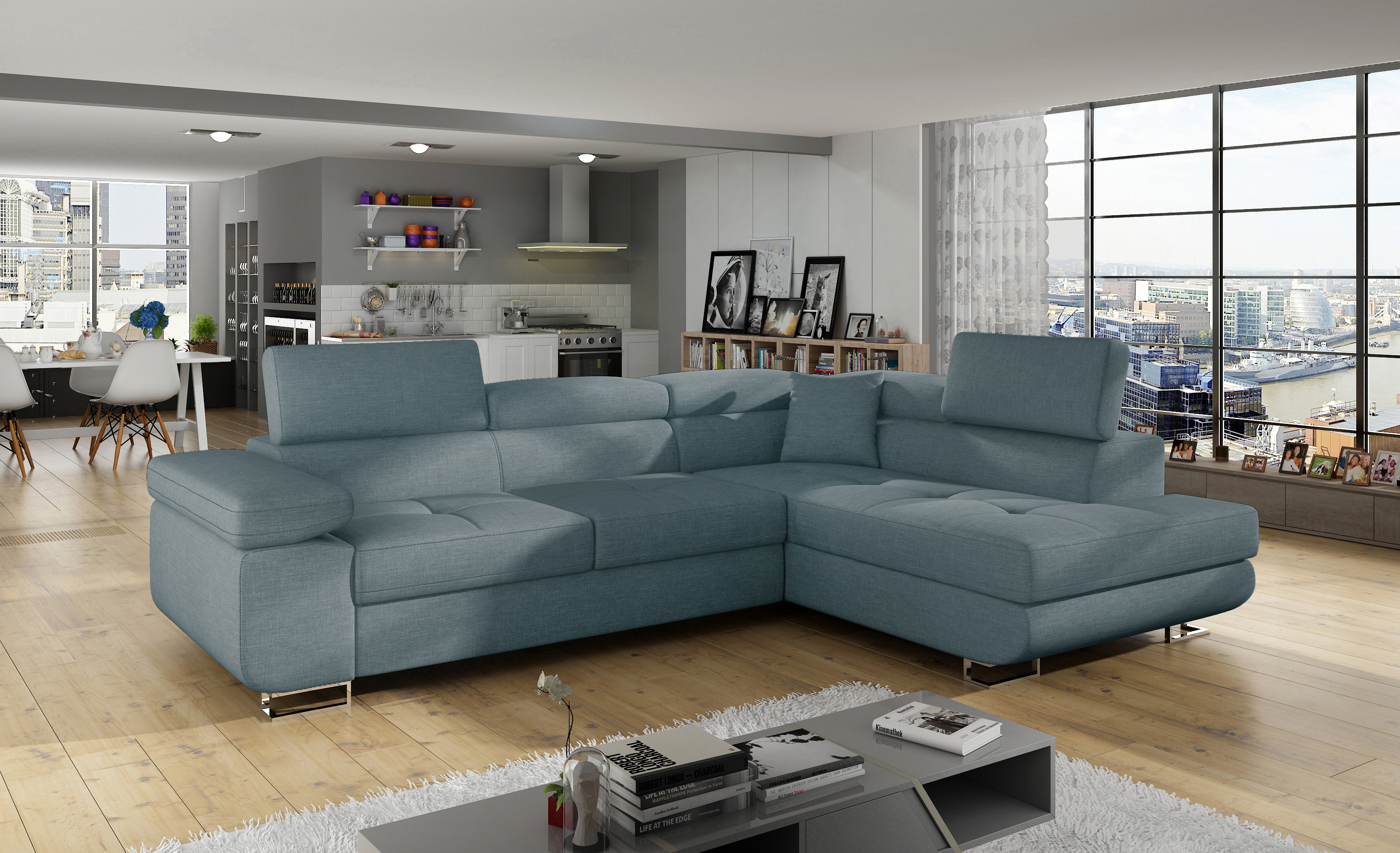 Rozkládací souprava Anton v barevném provedení látka Cover 70 . Výplň sedáků je vyrobena z vlnité pružiny a kvalitní PUR pěny T30. Souprava disponuje nastavitelnými opěrkami hlavy a úložným prostorem. Vytažení spodní části vznikne spací plocha 123x210 cm. Šířka područky 31 cm. Kovové nožky o šířce 20 cm a výšce 9 cm. Provedení pravé.