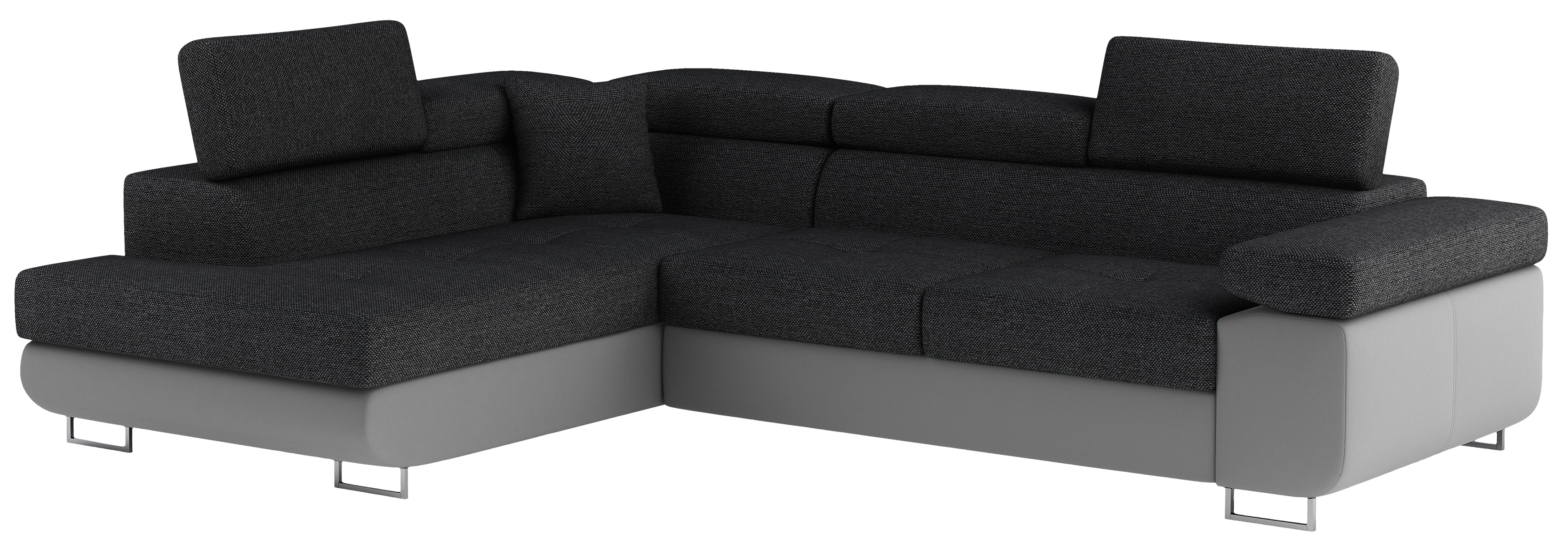 Rozkládací souprava Anton v barevném provedení látka Inari 96/ eko kůže Soft 29. Výplň sedáků je vyrobena z vlnité pružiny a kvalitní PUR pěny T30. Souprava disponuje nastavitelnými opěrkami hlavy a úložným prostorem. Vytažení spodní části vznikne spací plocha 123x210 cm. Šířka područky 31 cm. Kovové nožky o šířce 20 cm a výšce 9 cm. Provedení levé.