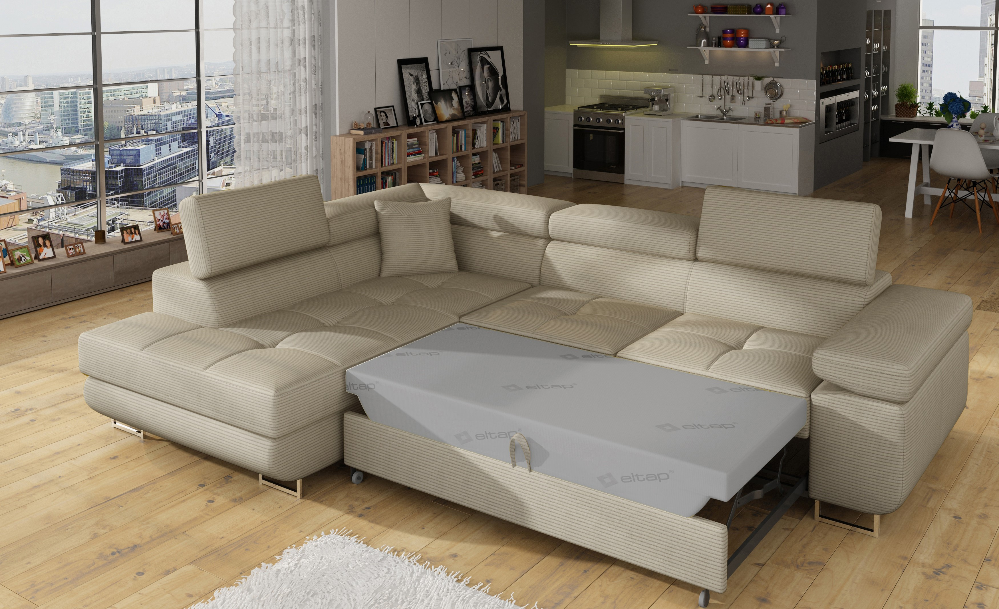 Rozkládací souprava Anton v barevném provedení látka Jarell 18. Výplň sedáků je vyrobena z vlnité pružiny a kvalitní PUR pěny T30. Souprava disponuje nastavitelnými opěrkami hlavy a úložným prostorem. Vytažení spodní části vznikne spací plocha 123x210 cm. Šířka područky 31 cm. Kovové nožky o šířce 20 cm a výšce 9 cm. Provedení levé.
