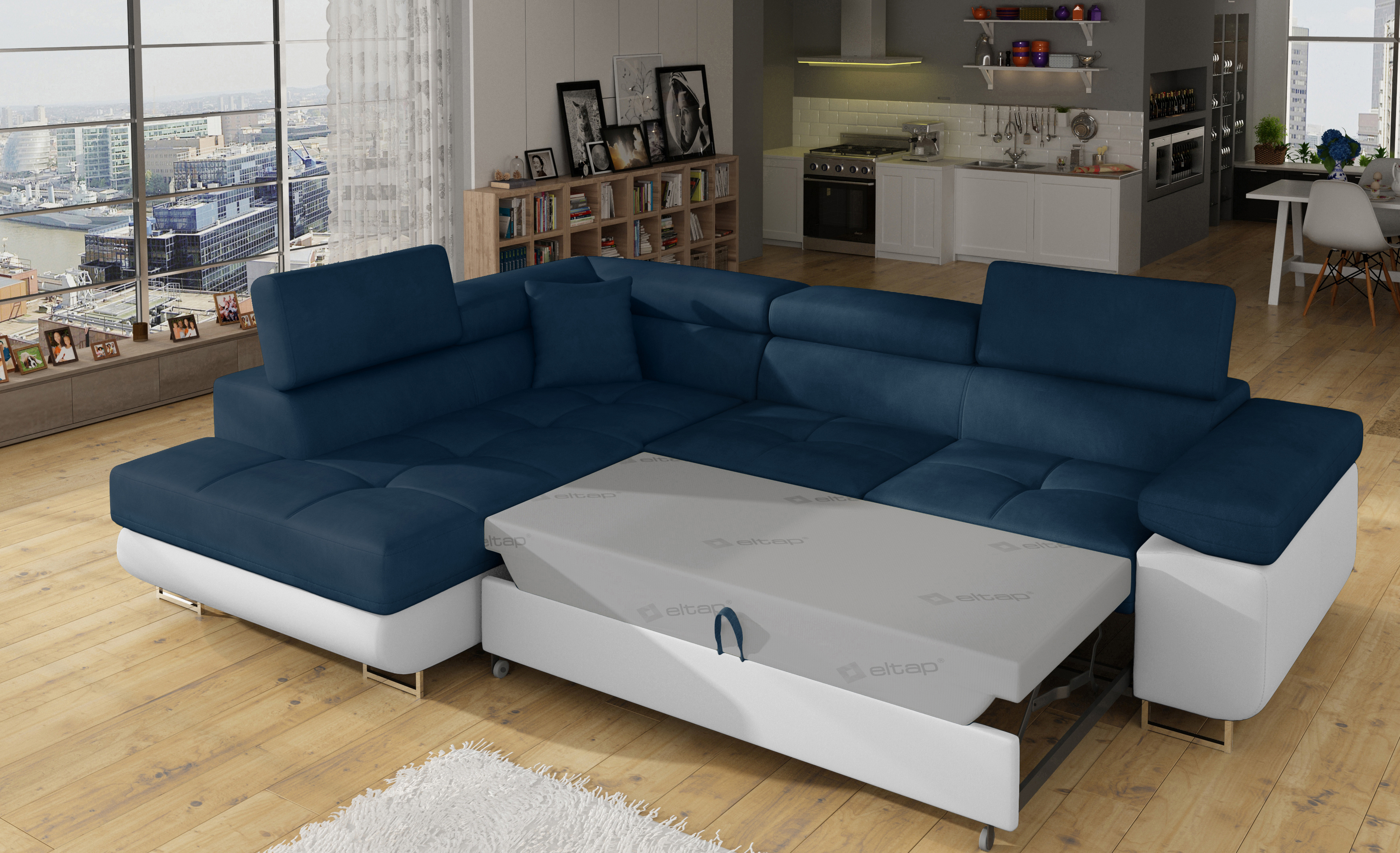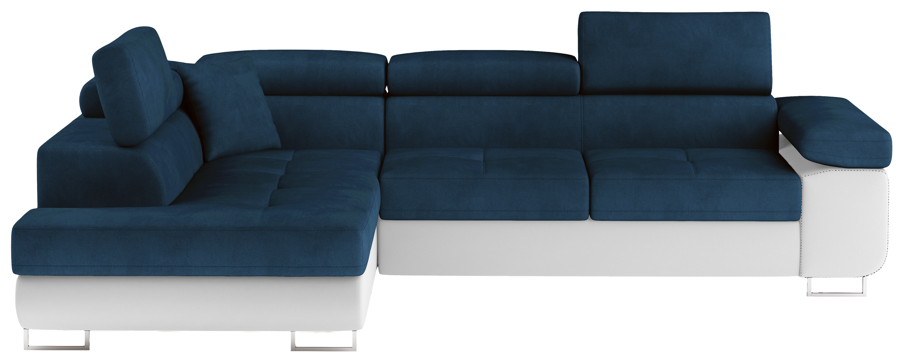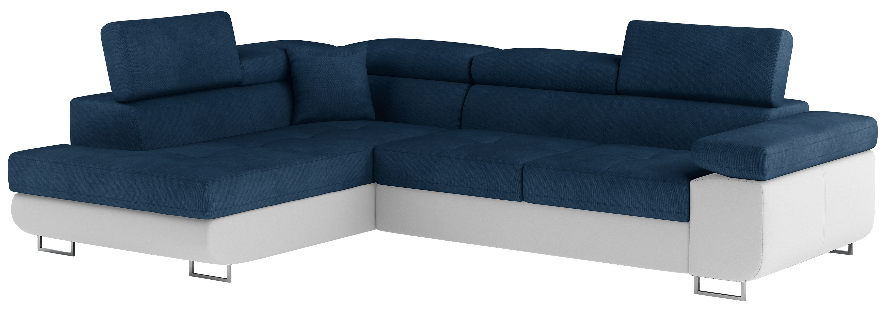 Rozkládací souprava Anton v barevném provedení látka Kronos 09/ eko kůže Soft 17. Výplň sedáků je vyrobena z vlnité pružiny a kvalitní PUR pěny T30. Souprava disponuje nastavitelnými opěrkami hlavy a úložným prostorem. Vytažení spodní části vznikne spací plocha 123x210 cm. Šířka područky 31 cm. Kovové nožky o šířce 20 cm a výšce 9 cm. Provedení levé.