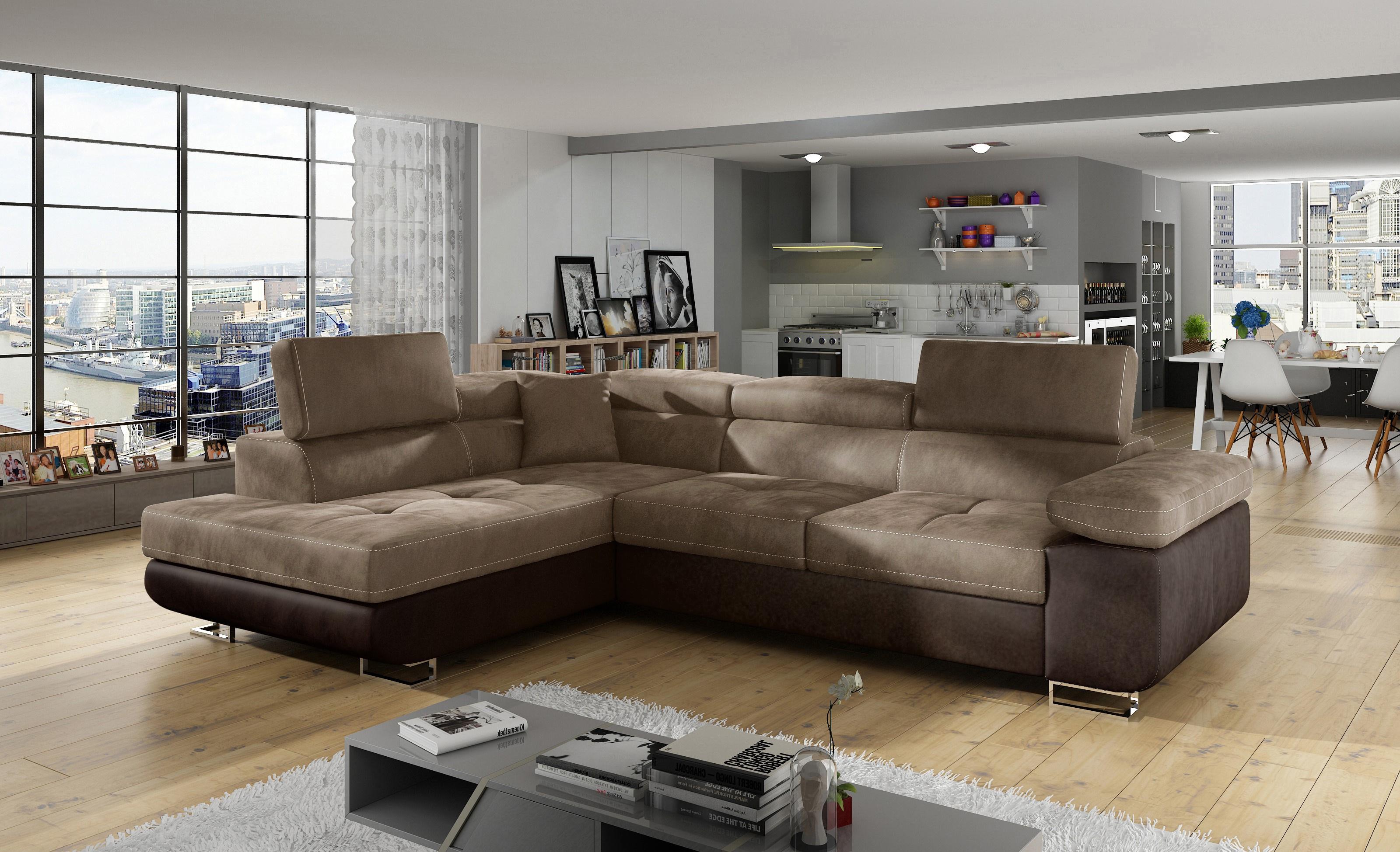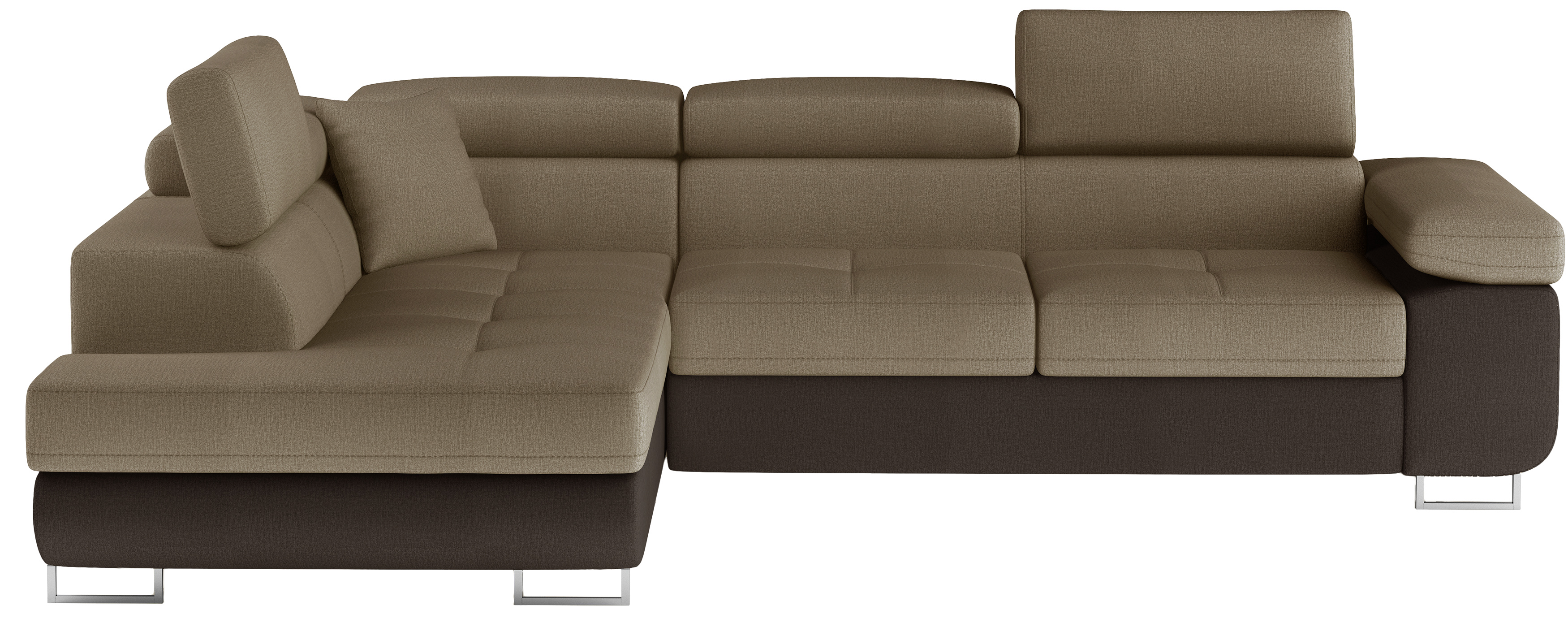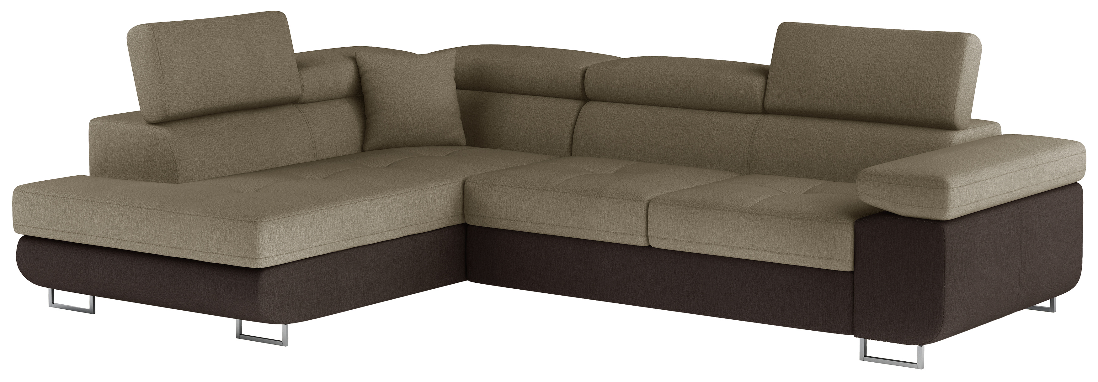 Rozkládací souprava Anton v barevném provedení látka Monolith 09/ Monolith 29. Výplň sedáků je vyrobena z vlnité pružiny a kvalitní PUR pěny T30. Souprava disponuje nastavitelnými opěrkami hlavy a úložným prostorem. Vytažení spodní části vznikne spací plocha 123x210 cm. Šířka područky 31 cm. Kovové nožky o šířce 20 cm a výšce 9 cm. Provedení levé.