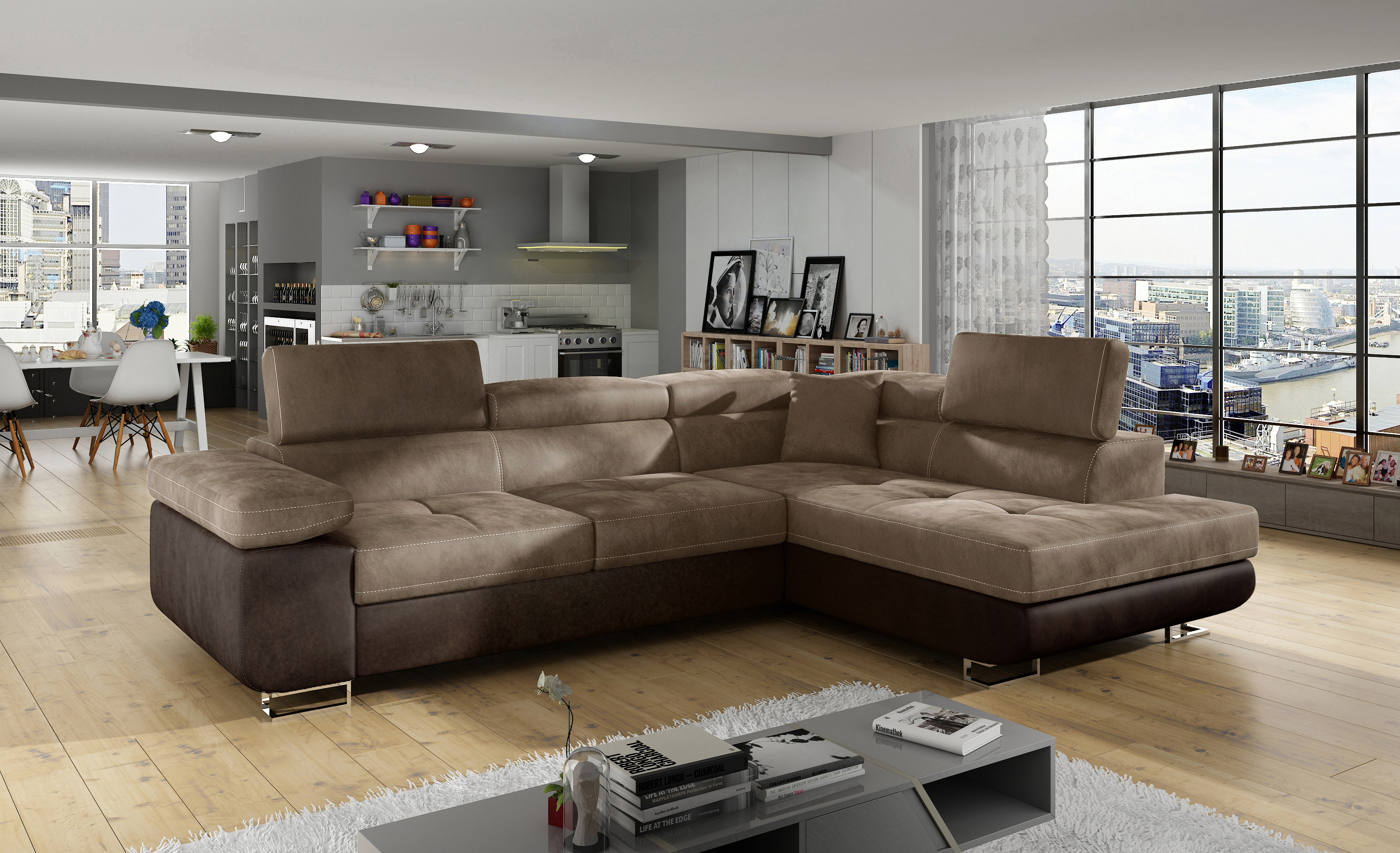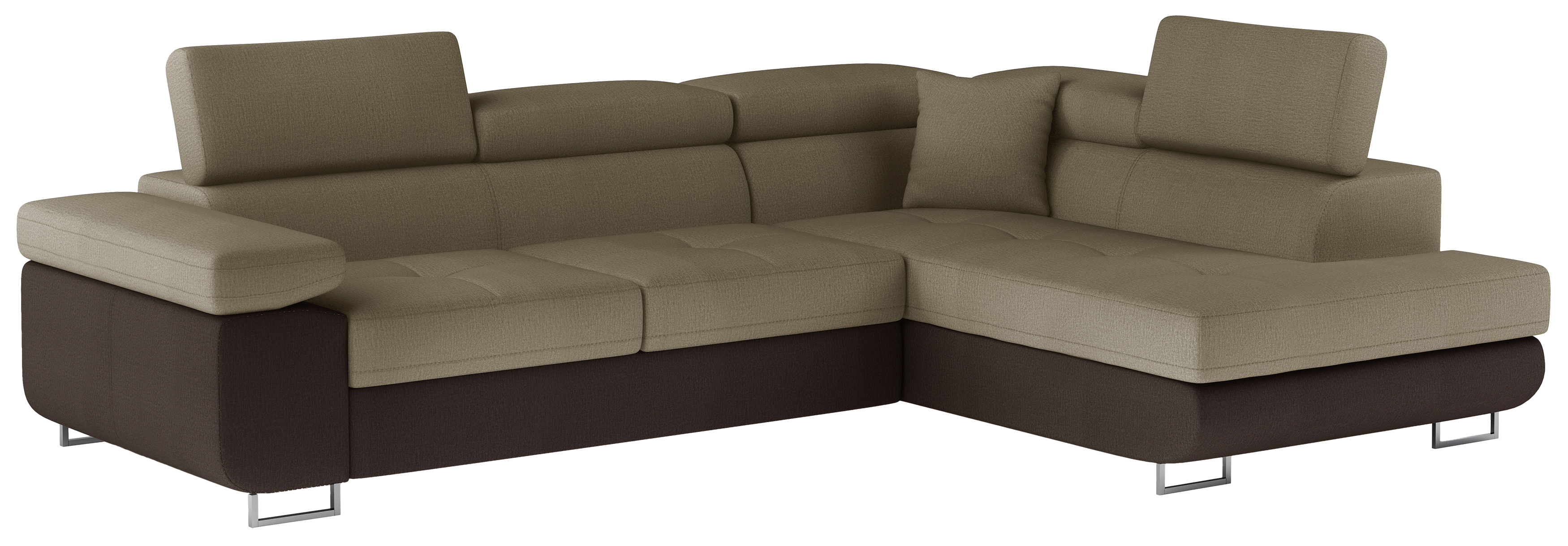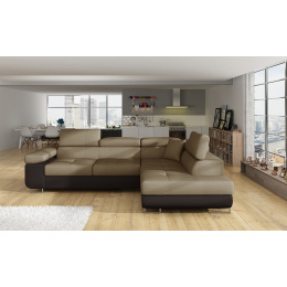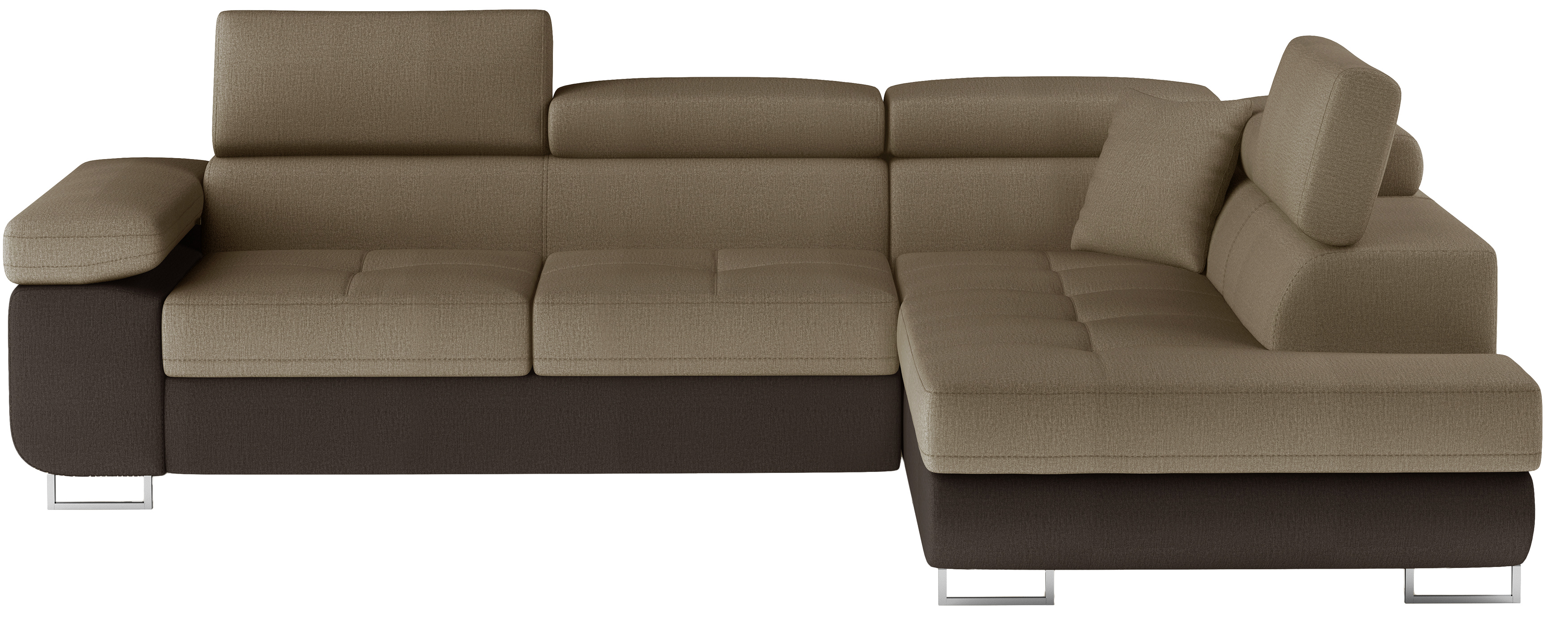 Rozkládací souprava Anton v barevném provedení látka Monolith 09/ Monolith 29. Výplň sedáků je vyrobena z vlnité pružiny a kvalitní PUR pěny T30. Souprava disponuje nastavitelnými opěrkami hlavy a úložným prostorem. Vytažení spodní části vznikne spací plocha 123x210 cm. Šířka područky 31 cm. Kovové nožky o šířce 20 cm a výšce 9 cm. Provedení pravé.