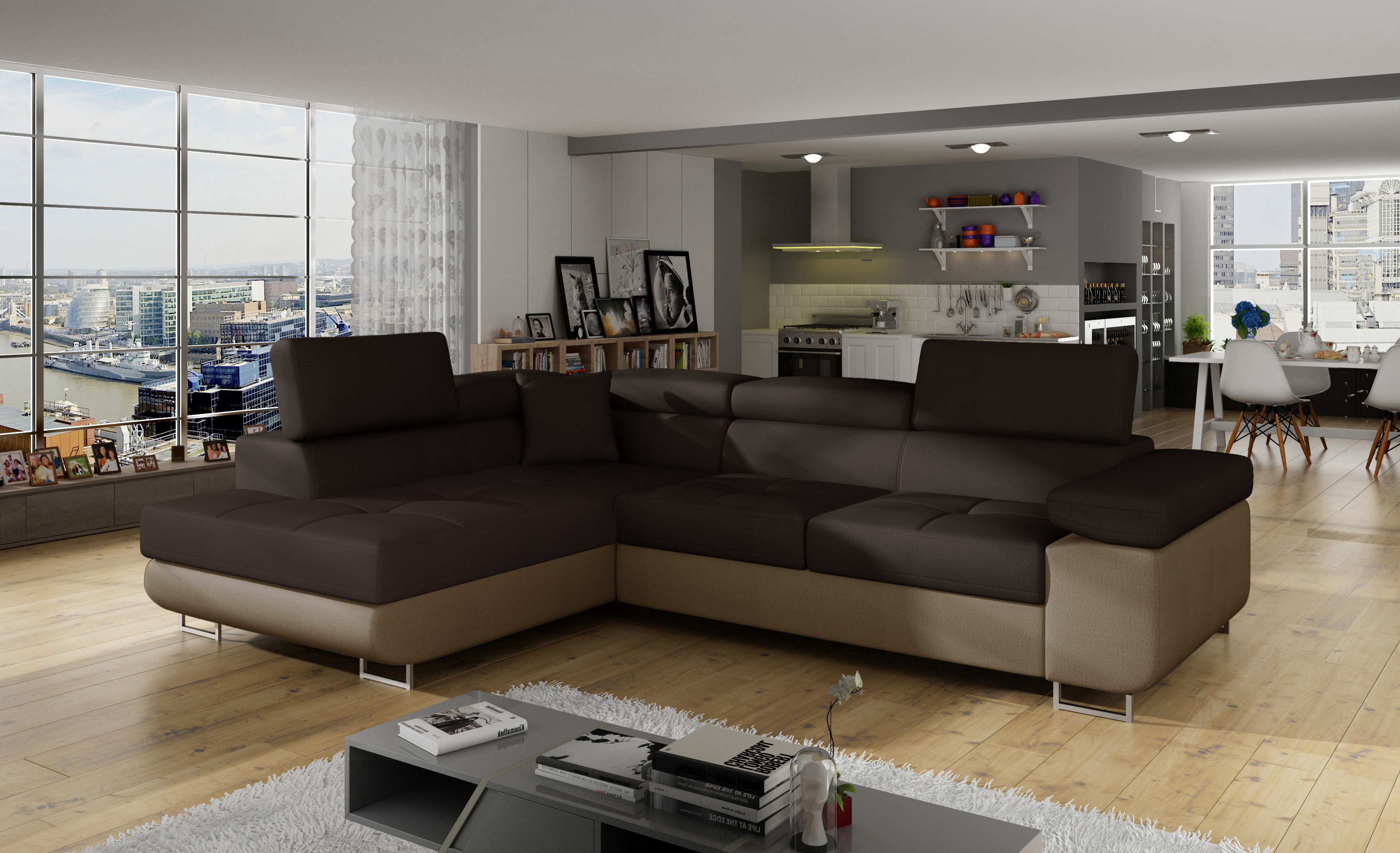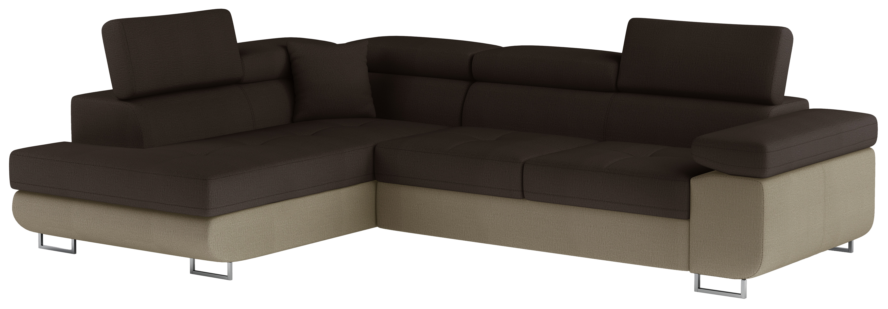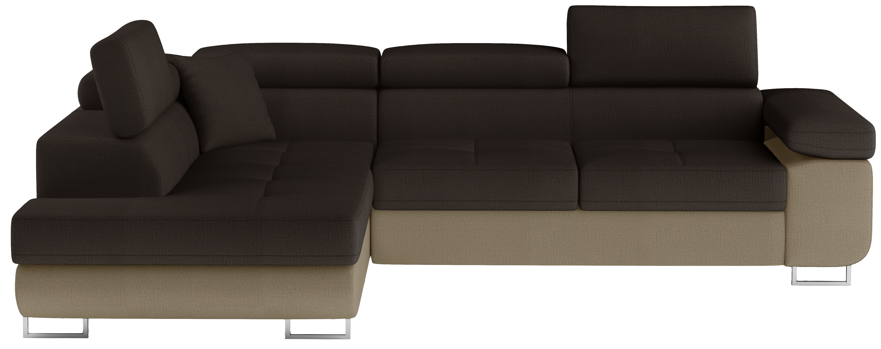 Rozkládací souprava Anton v barevném provedení látka Monolith 29/ Monolith 09. Výplň sedáků je vyrobena z vlnité pružiny a kvalitní PUR pěny T30. Souprava disponuje nastavitelnými opěrkami hlavy a úložným prostorem. Vytažení spodní části vznikne spací plocha 123x210 cm. Šířka područky 31 cm. Kovové nožky o šířce 20 cm a výšce 9 cm. Provedení levé.