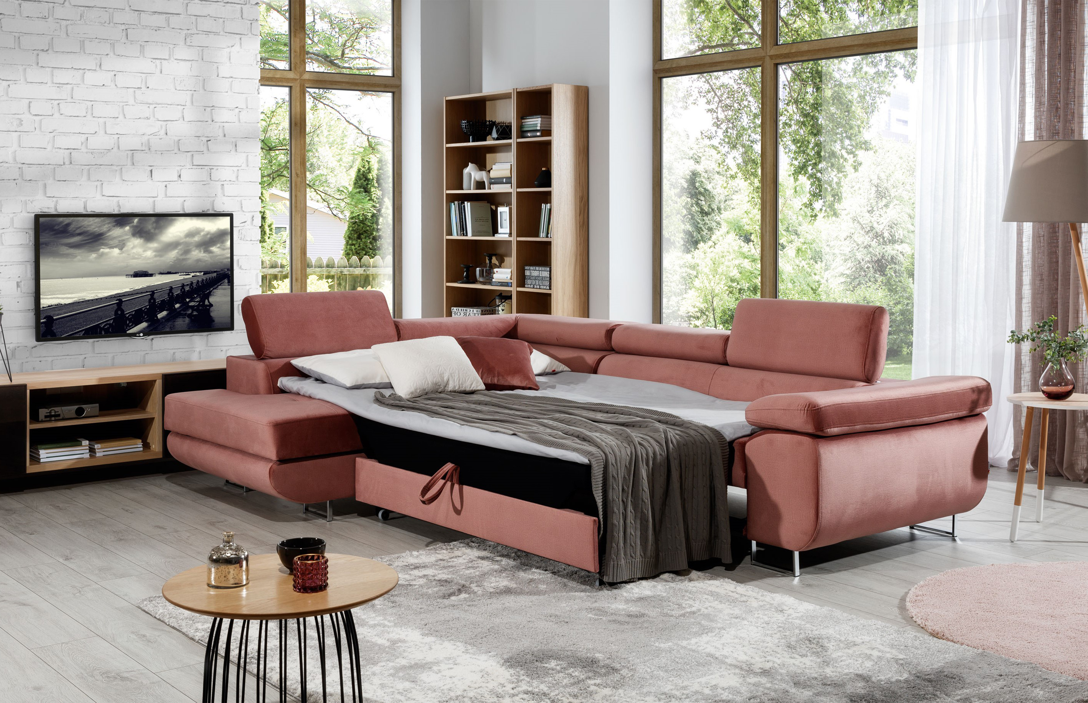 Rozkládací souprava Anton v barevném provedení látka Monolith 63. Výplň sedáků je vyrobena z vlnité pružiny a kvalitní PUR pěny T30. Souprava disponuje nastavitelnými opěrkami hlavy a úložným prostorem. Vytažení spodní části vznikne spací plocha 123x210 cm. Šířka područky 31 cm. Kovové nožky o šířce 20 cm a výšce 9 cm. Provedení levé.