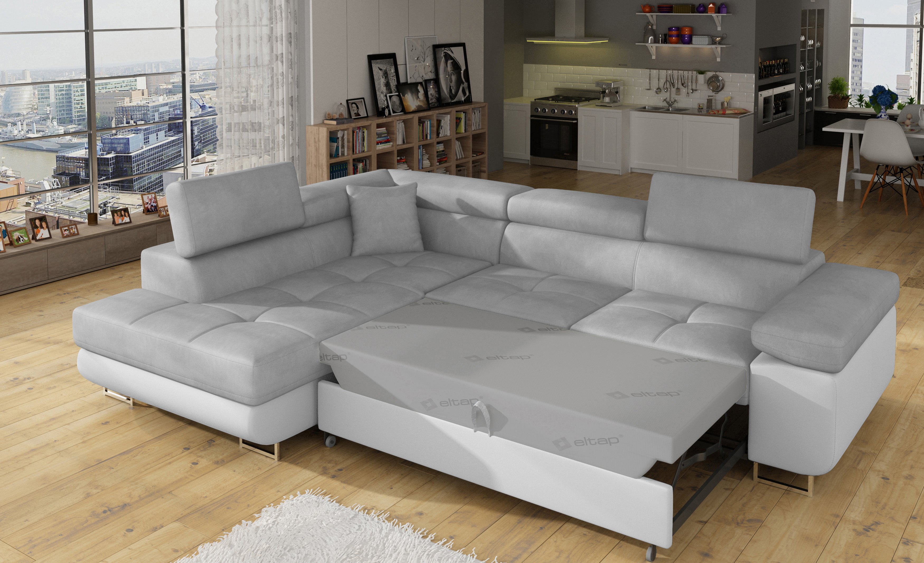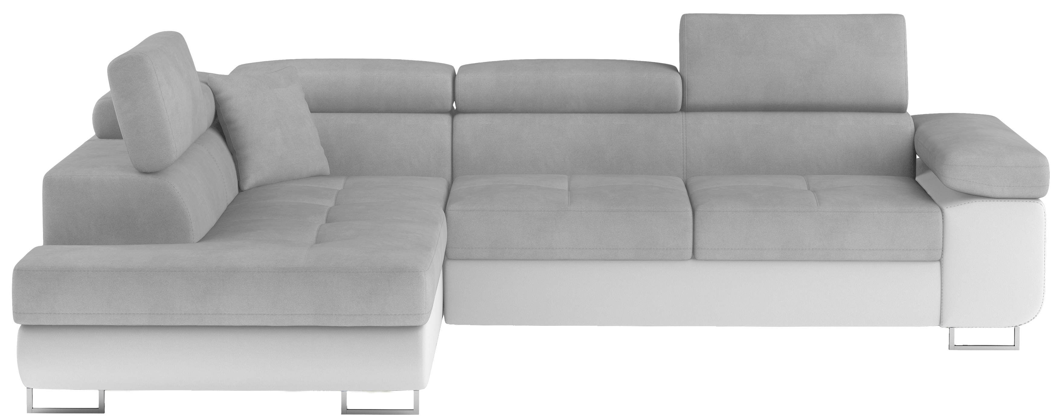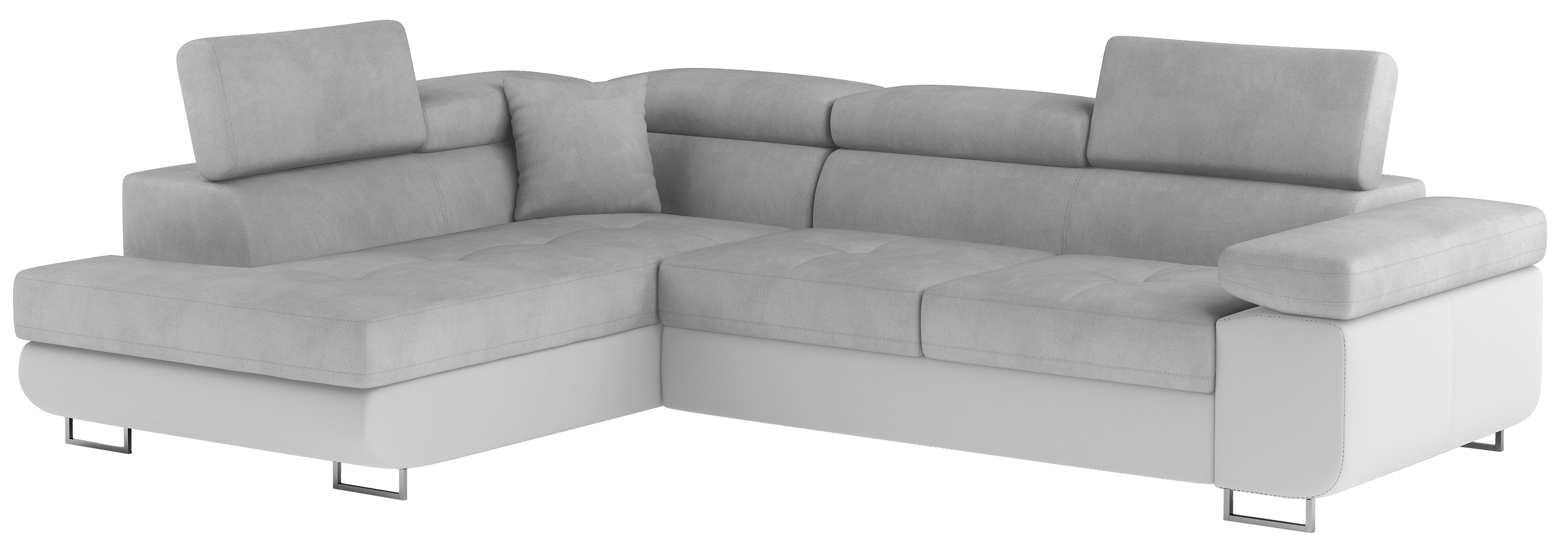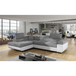 Rozkládací souprava Anton v barevném provedení látka Paros 05/ eko kůže 17. Výplň sedáků je vyrobena z vlnité pružiny a kvalitní PUR pěny T30. Souprava disponuje nastavitelnými opěrkami hlavy a úložným prostorem. Vytažení spodní části vznikne spací plocha 123x210 cm. Šířka područky 31 cm. Kovové nožky o šířce 20 cm a výšce 9 cm. Provedení levé.