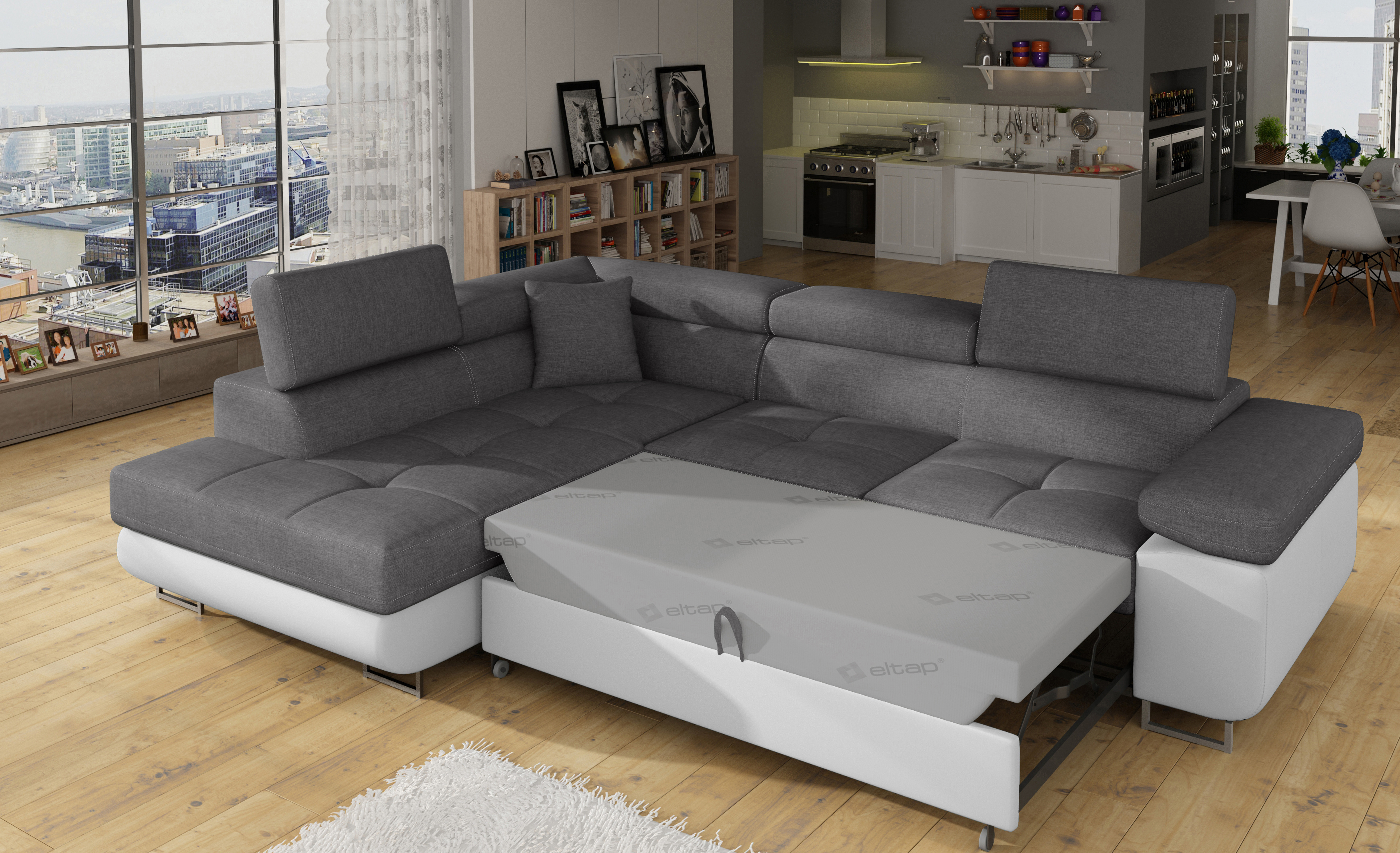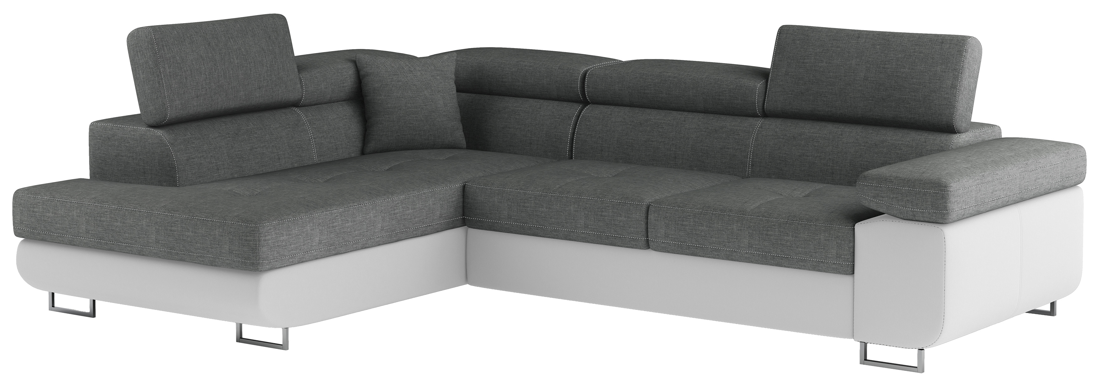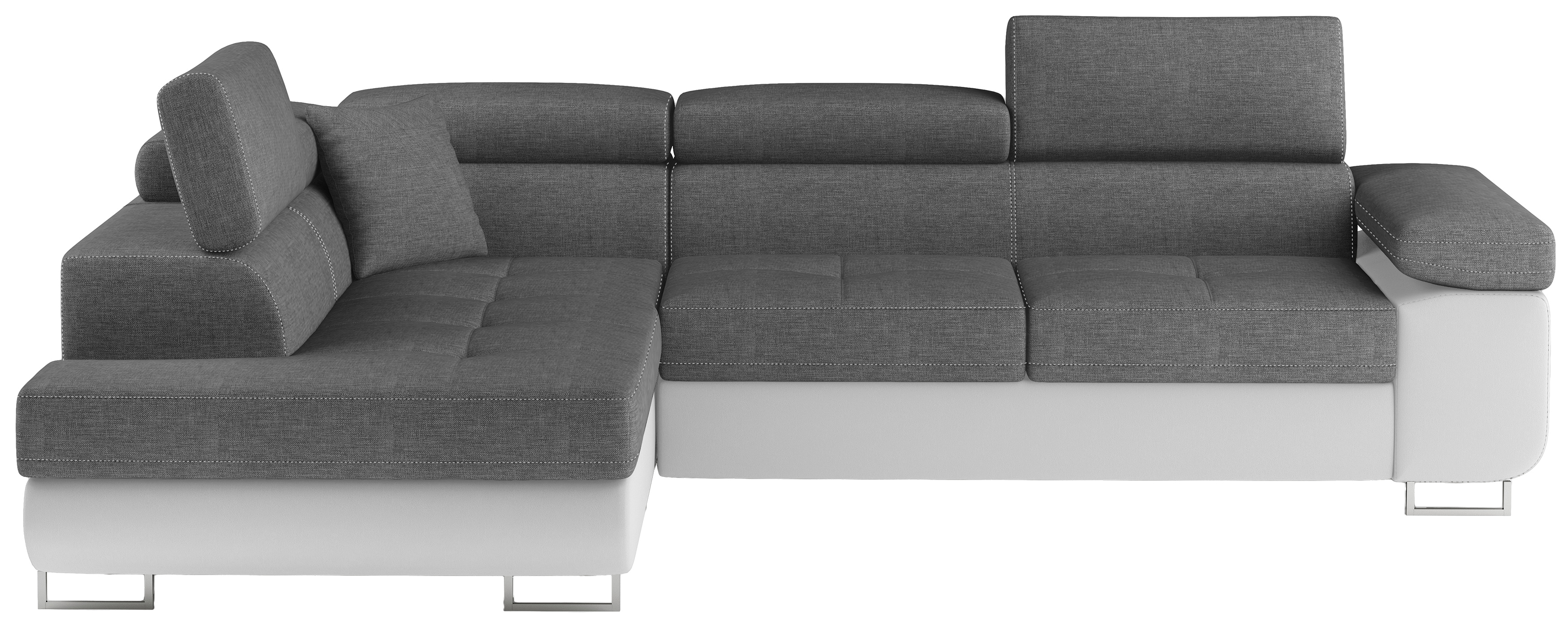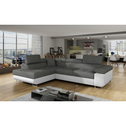 Rozkládací souprava Anton v barevném provedení látka Sawana 21/ eko kůže Soft 17. Výplň sedáků je vyrobena z vlnité pružiny a kvalitní PUR pěny T30. Souprava disponuje nastavitelnými opěrkami hlavy a úložným prostorem. Vytažení spodní části vznikne spací plocha 123x210 cm. Šířka područky 31 cm. Kovové nožky o šířce 20 cm a výšce 9 cm. Provedení levé.