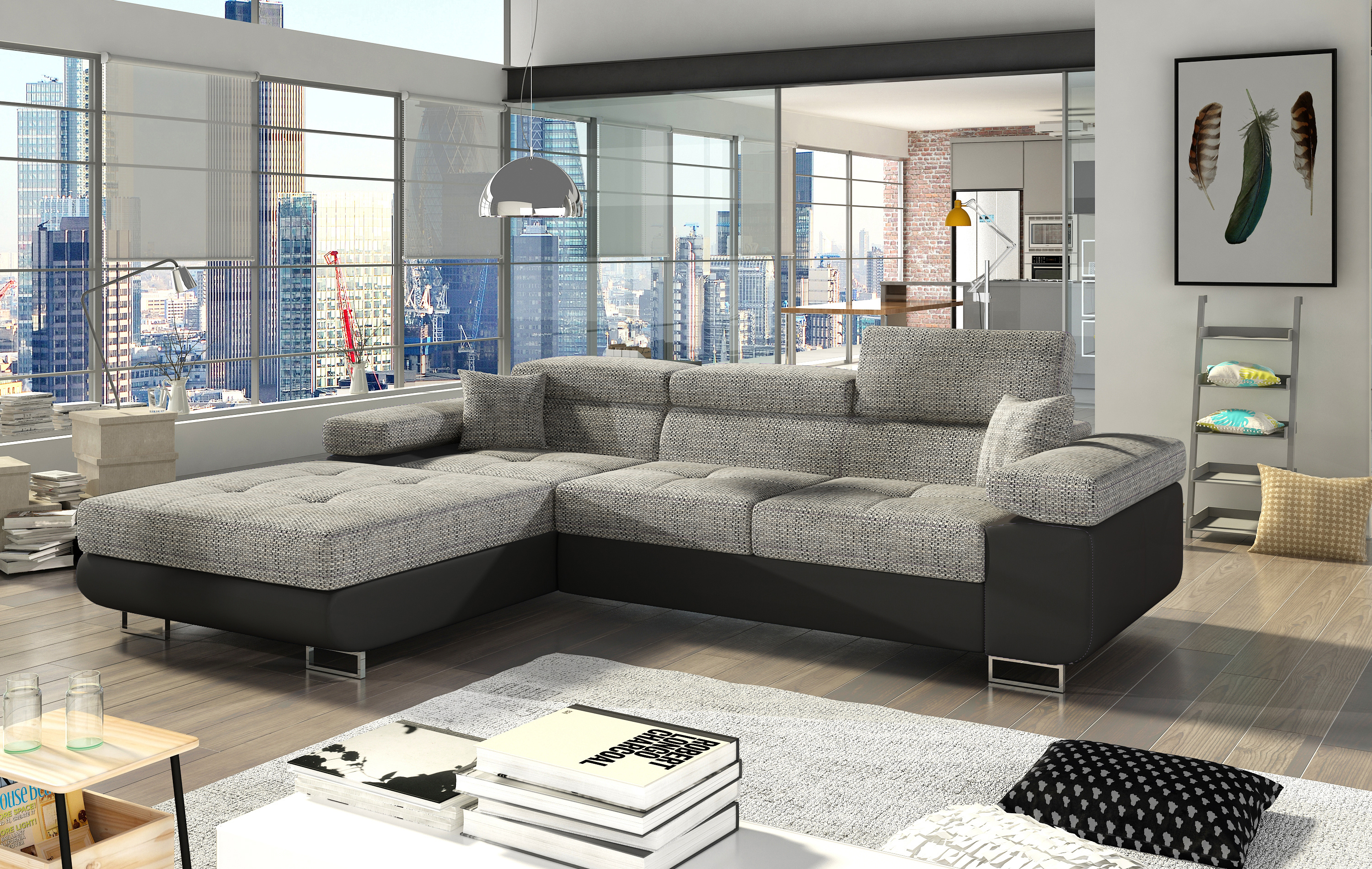Sedací souprava Armando v barevném provedení Berlin 01/ eko kůže Soft 11 má sedák z vlnité pružiny a kvalitní PUR pěny T30. Disponuje vysokými chromovanými nožkami o výšce 9 cm a šířce 20 cm. Rozkladem spací plochy 123x210 cm. Provedení levé.
