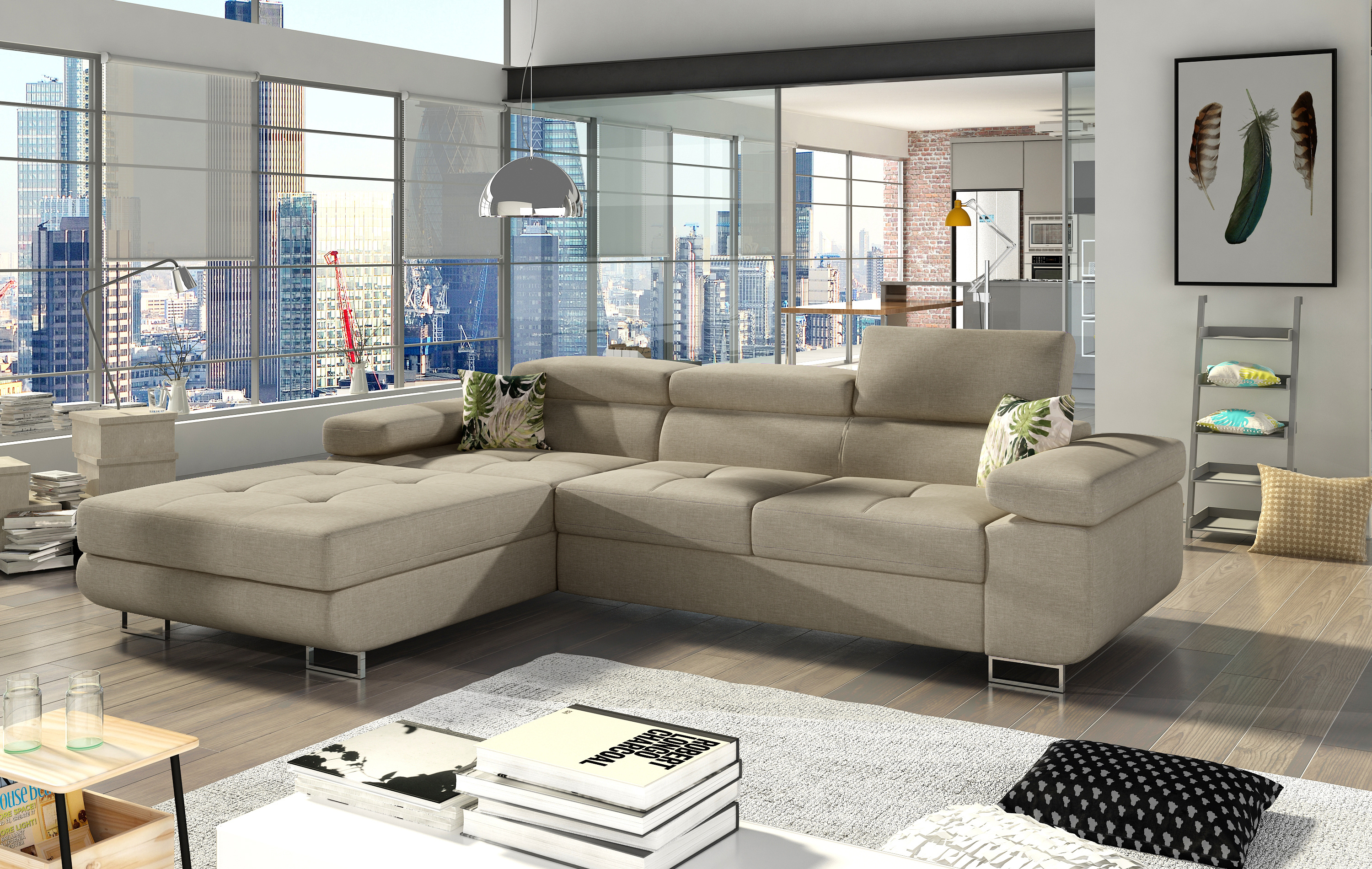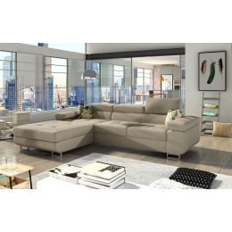 Sedací souprava Armando v barevném provedení Cover 83/ polštářky Jungle 37 má sedák z vlnité pružiny a kvalitní PUR pěny T30. Disponuje vysokými chromovanými nožkami o výšce 9 cm a šířce 20 cm. Rozkladem spací plochy 123x210 cm. Provedení levé.