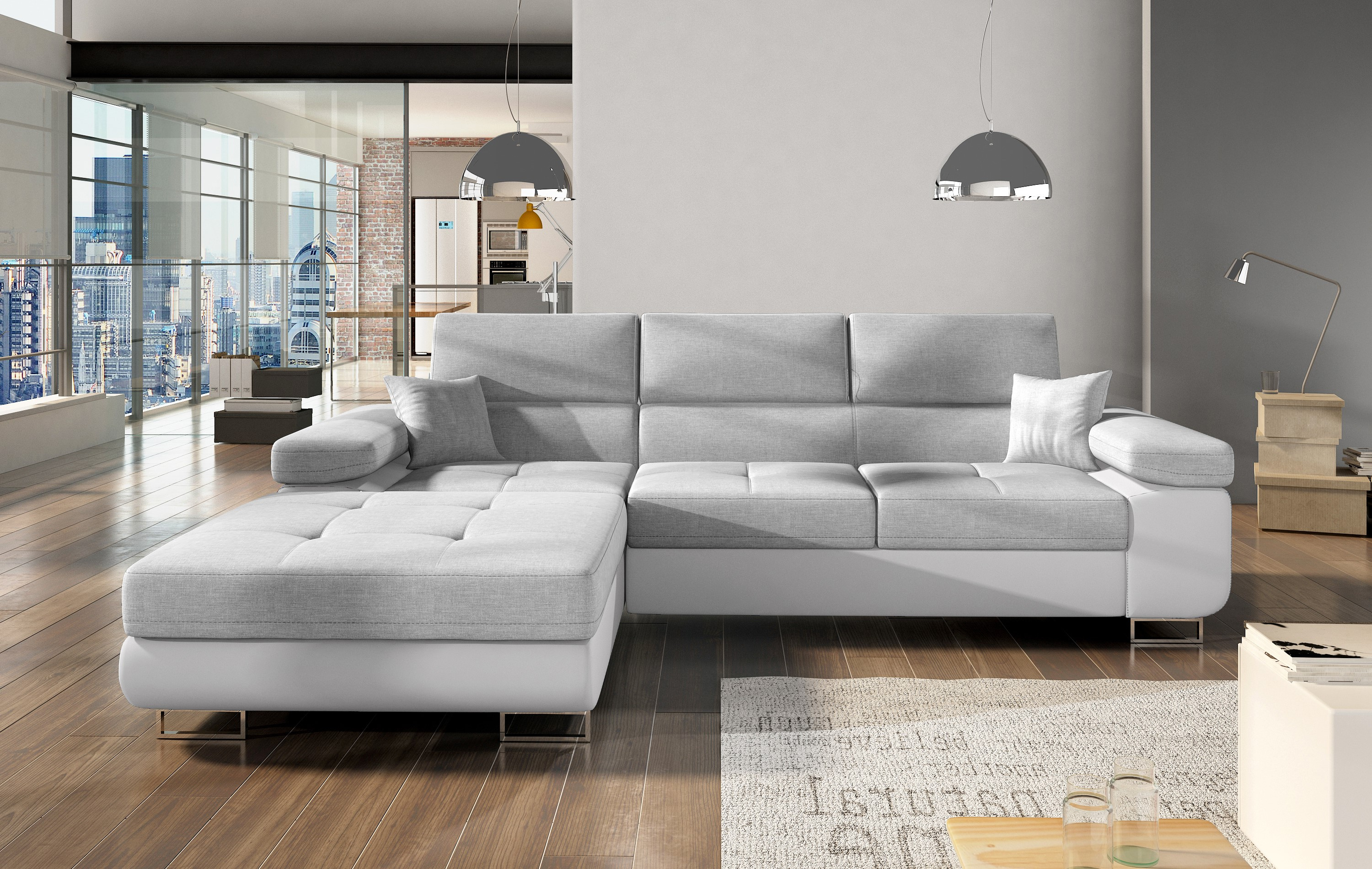 Sedací souprava Armando je barevném provedení Sawana 17/ eko kůže Soft 17 má sedák z vlnité pružiny a kvalitní PUR pěny T30.Disponuje vysokými chromovanými nožkami. Rozkladem spací plochy 125x198 cm.