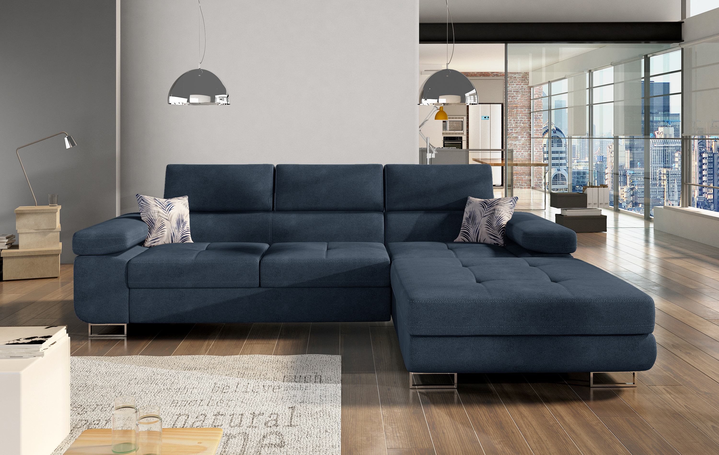 Sedací souprava Armando v barevném provedení Soro 76 a polštářky v provedení Botanical 80, má sedák  z vlnité pružiny a kvalitní PUR pěny T30.Disponuje vysokými chromovanými nožkami. Rozkladem spací plochy 125x198 cm.