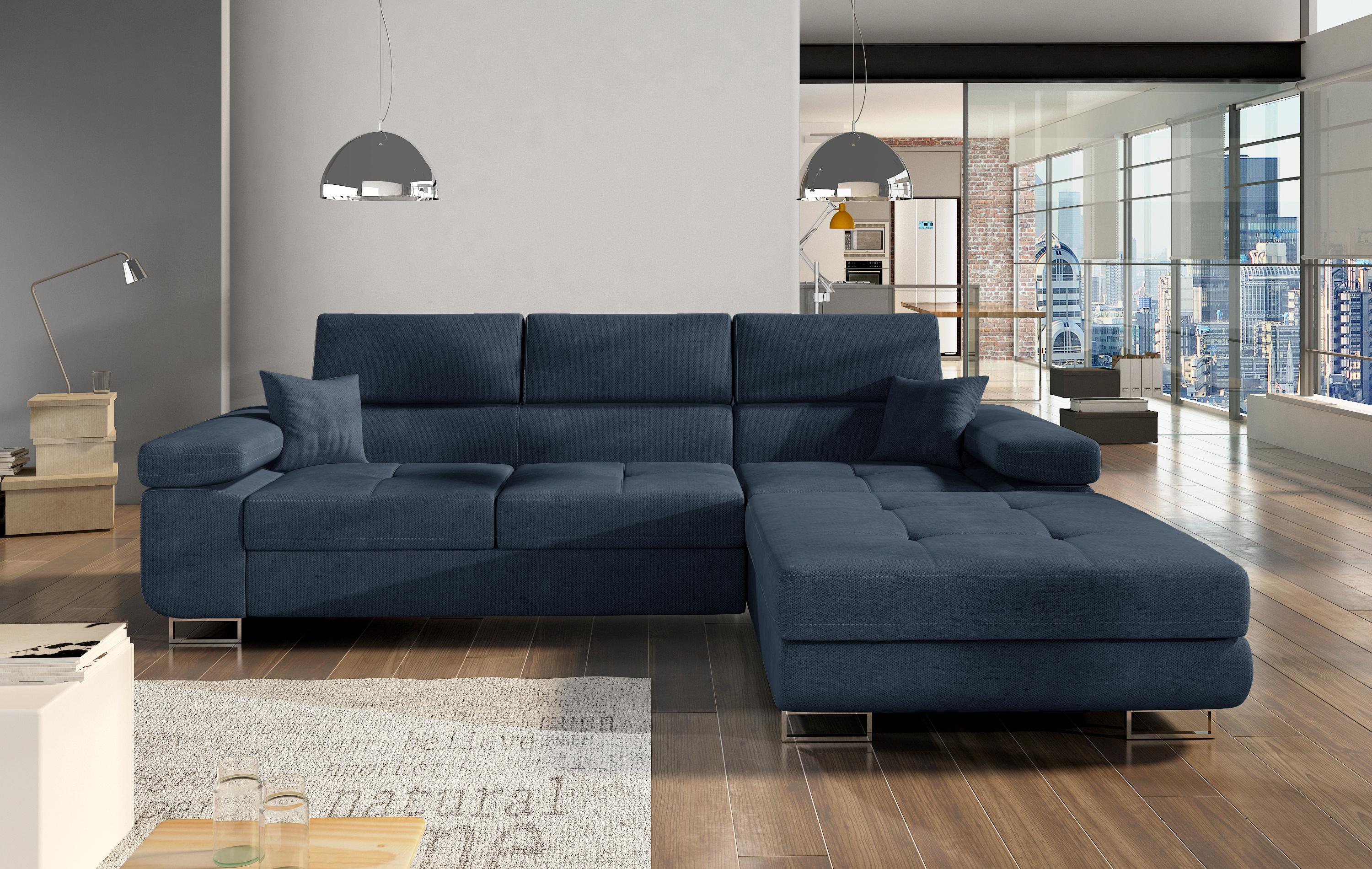 Sedací souprava Armando v barevném provedení Soro 76 má sedák  z vlnité pružiny a kvalitní PUR pěny T30.Disponuje vysokými chromovanými nožkami. Rozkladem spací plochy 125x198 cm.