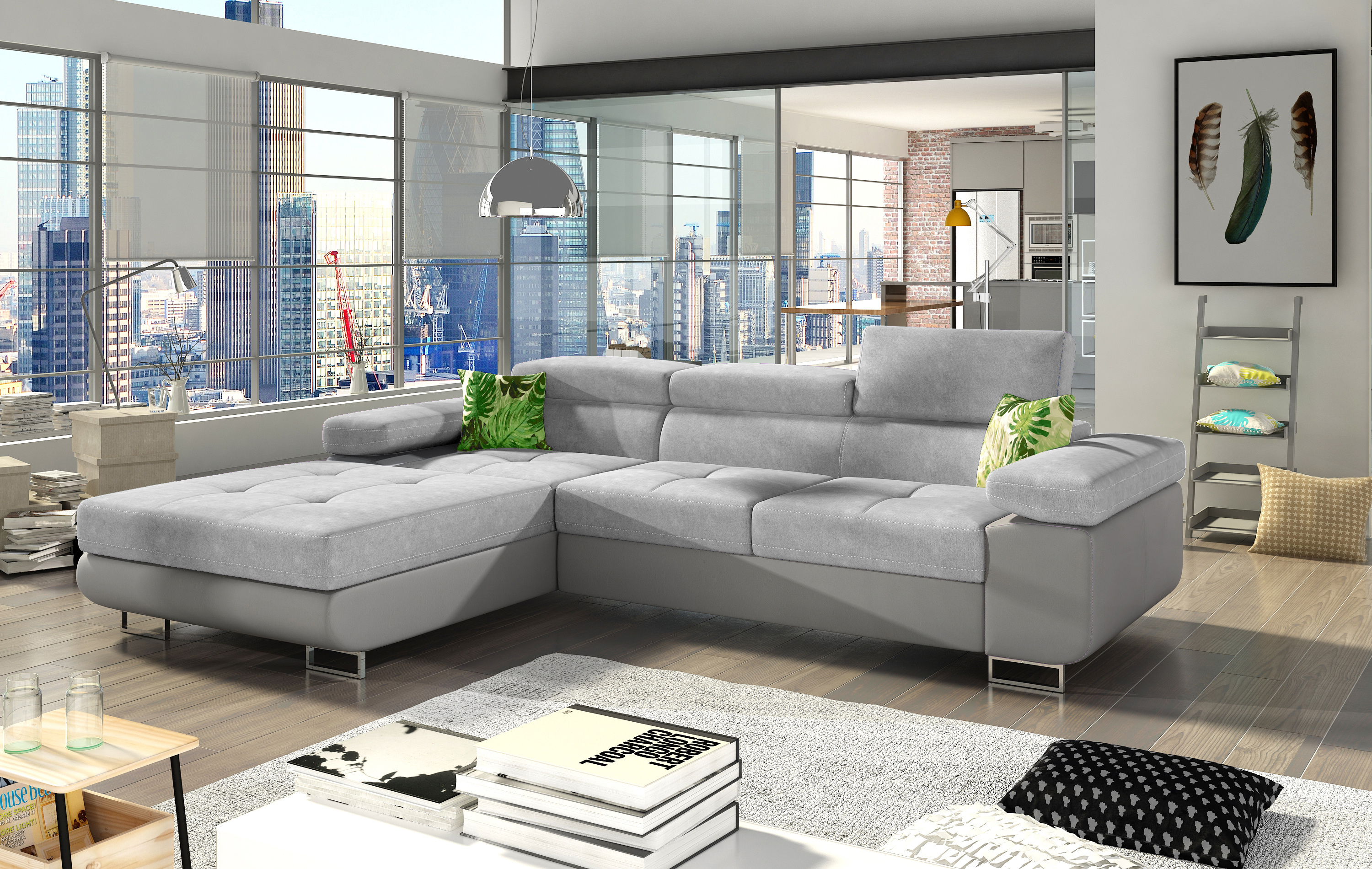 Sedací souprava Armando je barevném provedení Soro 83/ eko kůže Soft 29 má sedák z vlnité pružiny a kvalitní PUR pěny T30. Disponuje vysokými chromovanými nožkami o výšce 9 cm a šířce 20 cm. Rozkladem spací plochy 123x210 cm. Provedení levé.