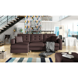 Sedací souprava v provedení eko kůže Soft 66 má sedáky z odolné vlnové pružiny a elastické pěny T30. Disponuje úložným prostorem. Rozkladem vznikne spací plocha 210x120 cm. Tato sedací souprava je variabilní. Vysoké, soustružené dřevěné nohy.