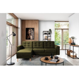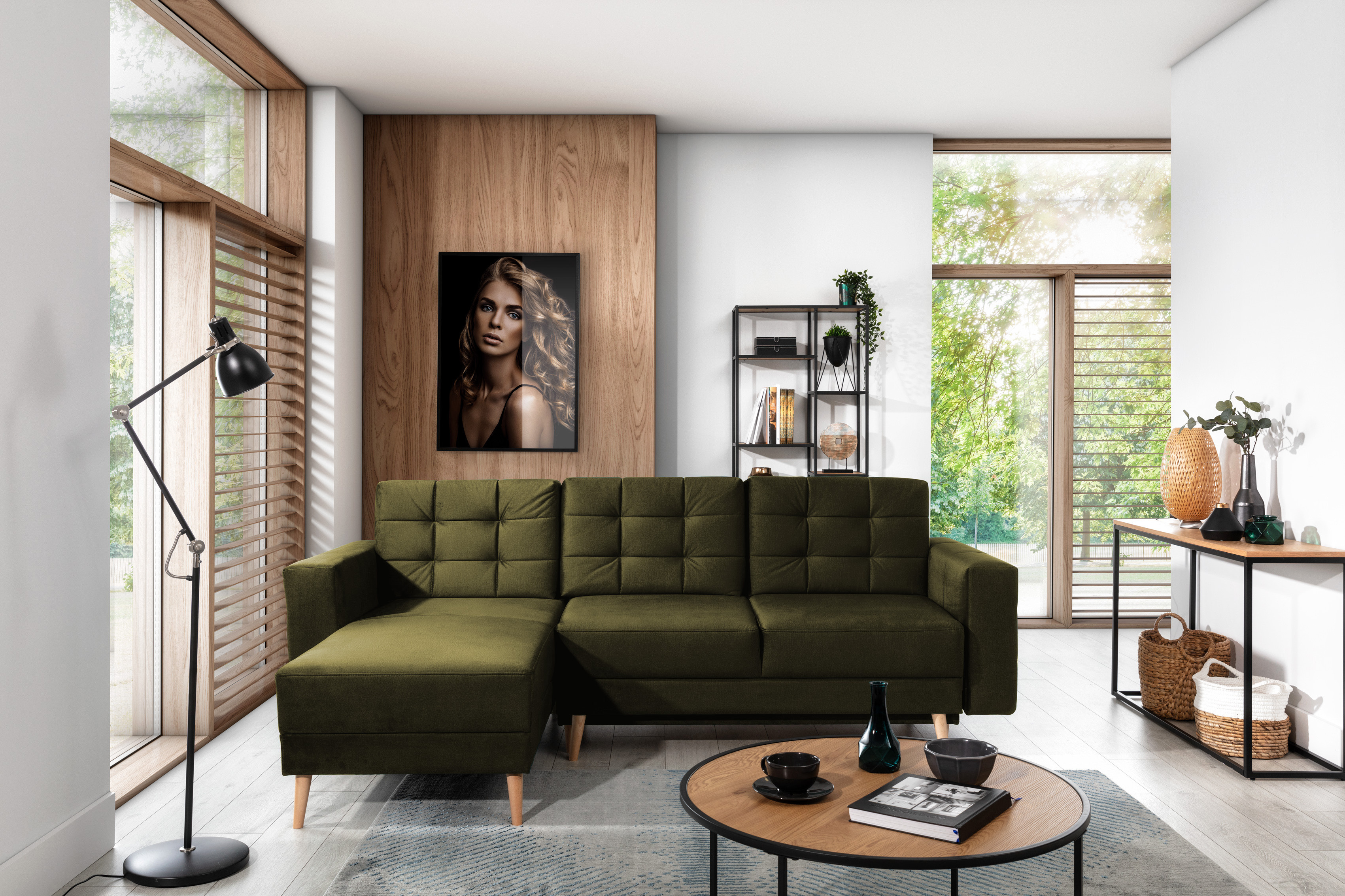 Sedací souprava v provedení Monolith 38 má sedáky z odolné vlnové pružiny a elastické pěny T30. Disponuje úložným prostorem. Rozkladem vznikne spací plocha 210x120 cm. Tato sedací souprava je variabilní. Vysoké, soustružené dřevěné nohy o výšce 15 cm.