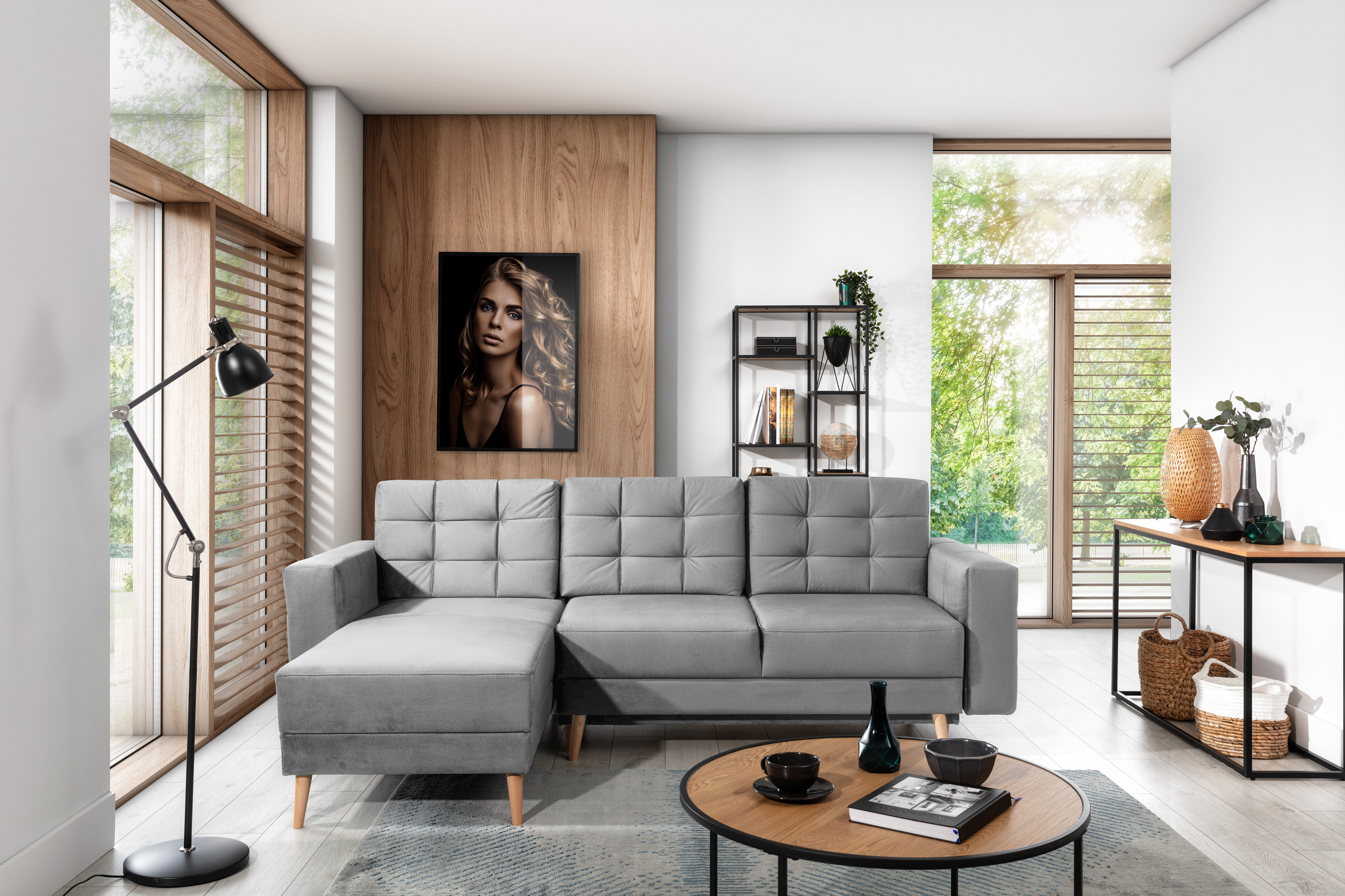 Sedací souprava v provedení Monolith 84 má sedáky z odolné vlnové pružiny a elastické pěny T30. Disponuje úložným prostorem. Rozkladem vznikne spací plocha 210x120 cm. Tato sedací souprava je variabilní. Vysoké, soustružené dřevěné nohy.