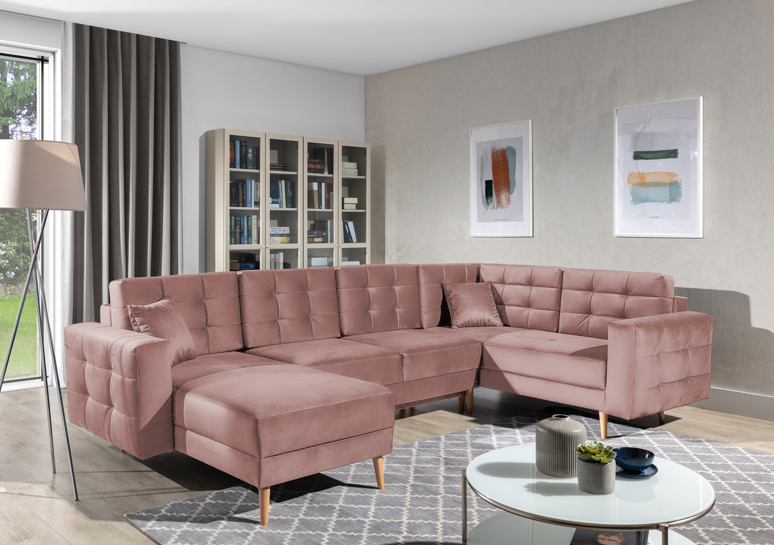 Sedací souprava v provedení Cover 87 má sedáky z odolné vlnové pružiny a elastické pěny T30. Disponuje úložným prostorem. Rozkladem vznikne spací plocha 282x120 cm. Tato sedací souprava je variabilní. Vysoké, soustružené dřevěné nohy.