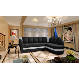 Sedací souprava Benano v provedení eko kůže Soft 11/ eko kůže Soft 17 má sedáky z vlnité pružiny a měkké pěna T30. Souprava disponuje úložným prostorem. Rozkladem vznikne spací plocha 195x125cm. Nožky jsou černé plastové o výšce 2,5 cm. Provedení rohu pravé.