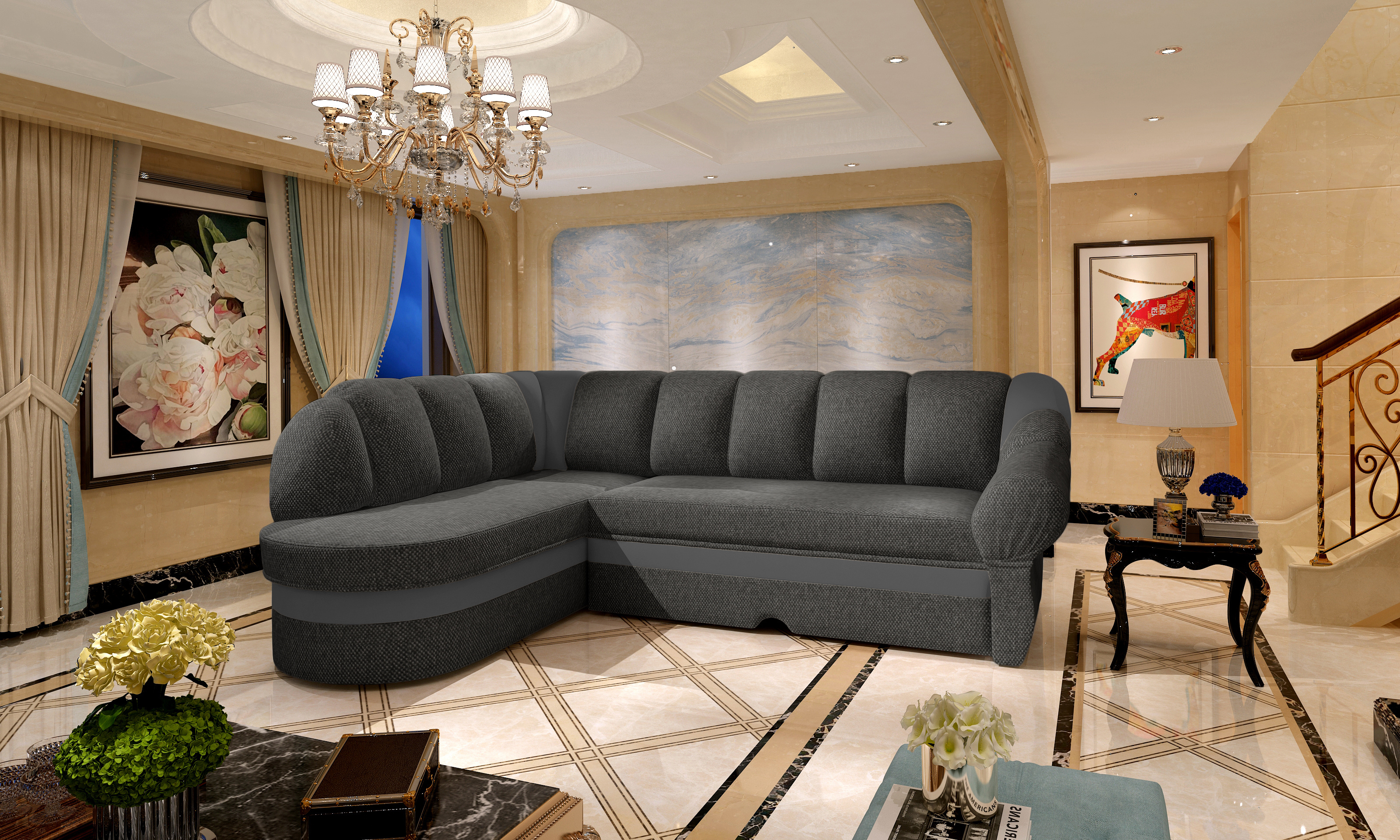 Sedací souprava Benano v provedení Inari 96/ eko kůže Soft 29 má sedáky z vlnité pružiny a měkké pěna T30. Souprava disponuje úložným prostorem. Rozkladem vznikne spací plocha 195x125cm. Nožky jsou černé plastové o výšce 2,5 cm. Provedení rohu levé.