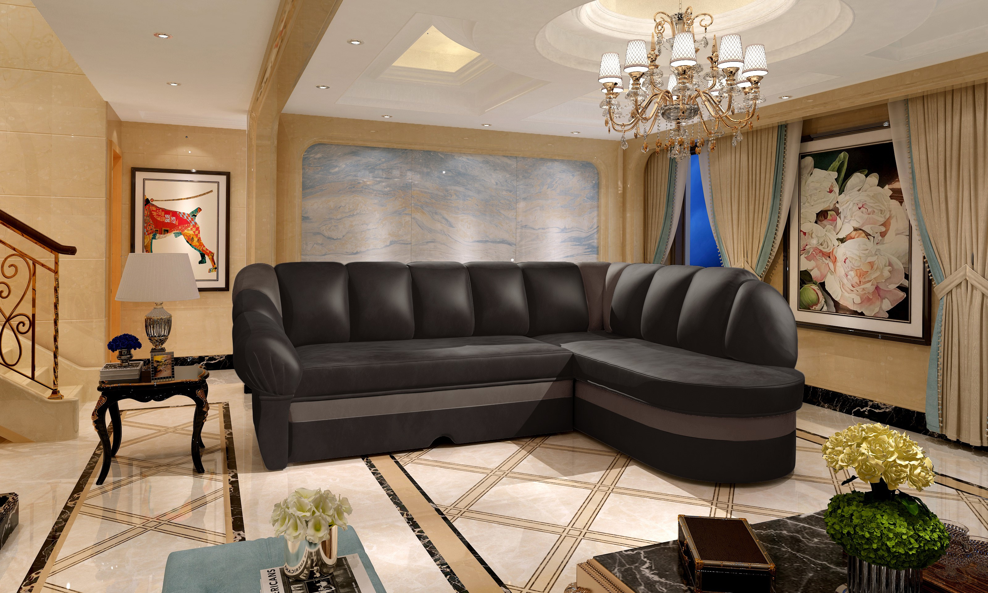 Sedací souprava Benano v provedení Monolith 29/ Monolith 09 má sedáky z vlnité pružiny a měkké pěna T30. Souprava disponuje úložným prostorem. Rozkladem vznikne spací plocha 195x125cm. Nožky jsou černé plastové o výšce 2,5 cm. Provedení rohu pravé.